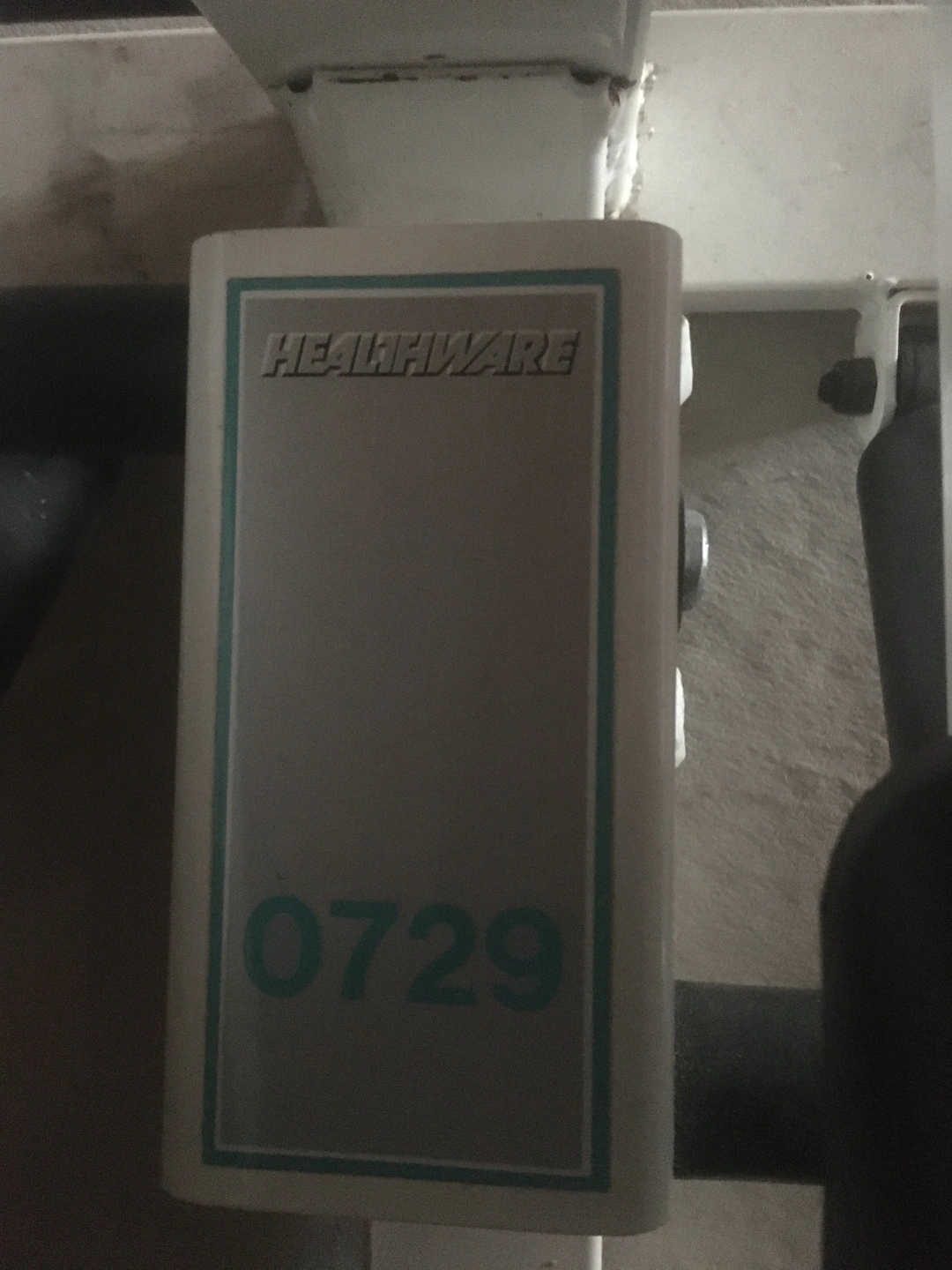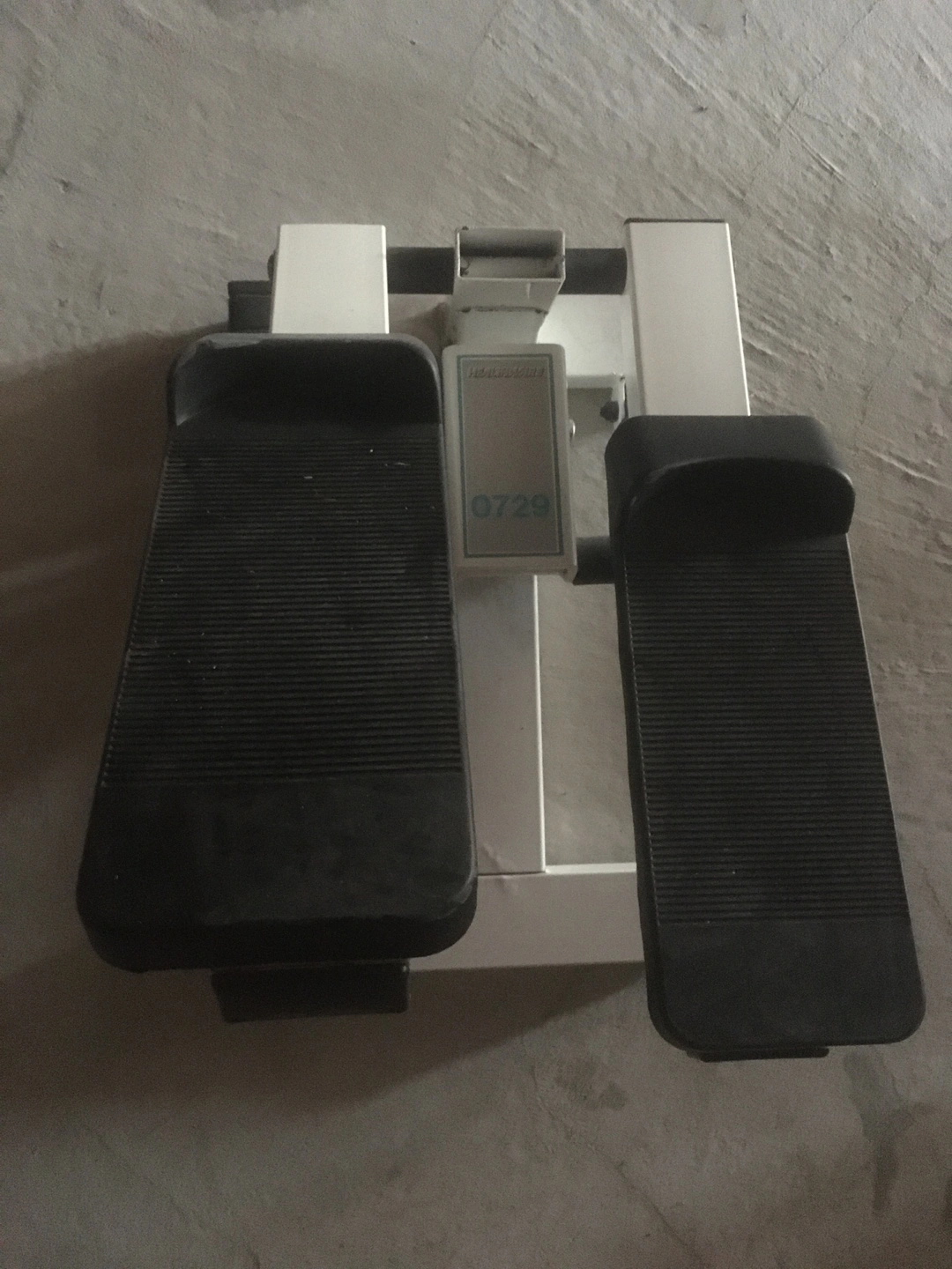 Used Healthware stepper. White frame, black foot platforms. Good for a home workout.