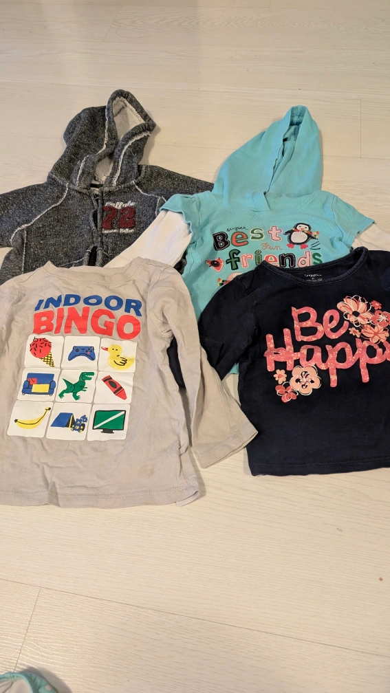 Four cute long-sleeve shirts with 2 hoodies. Size 3T Great for layering.