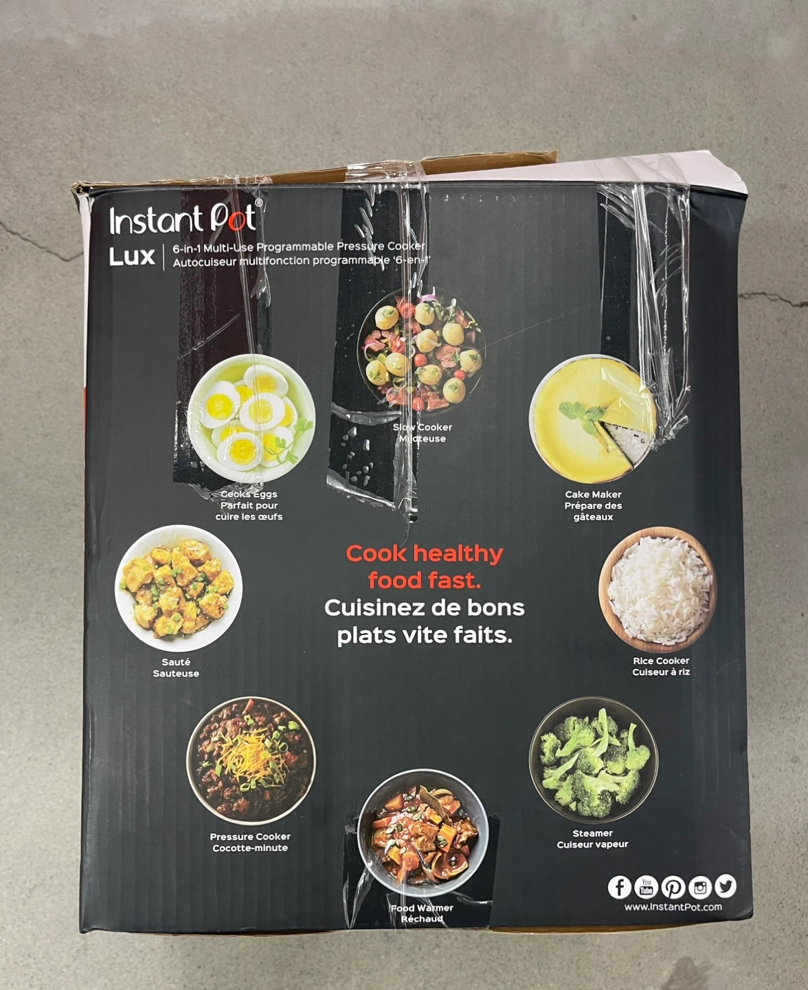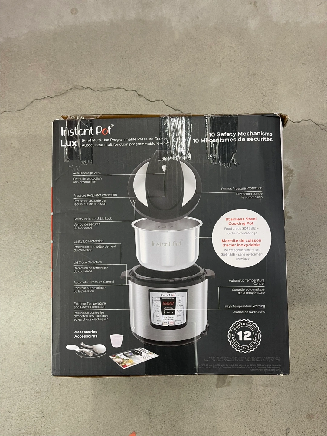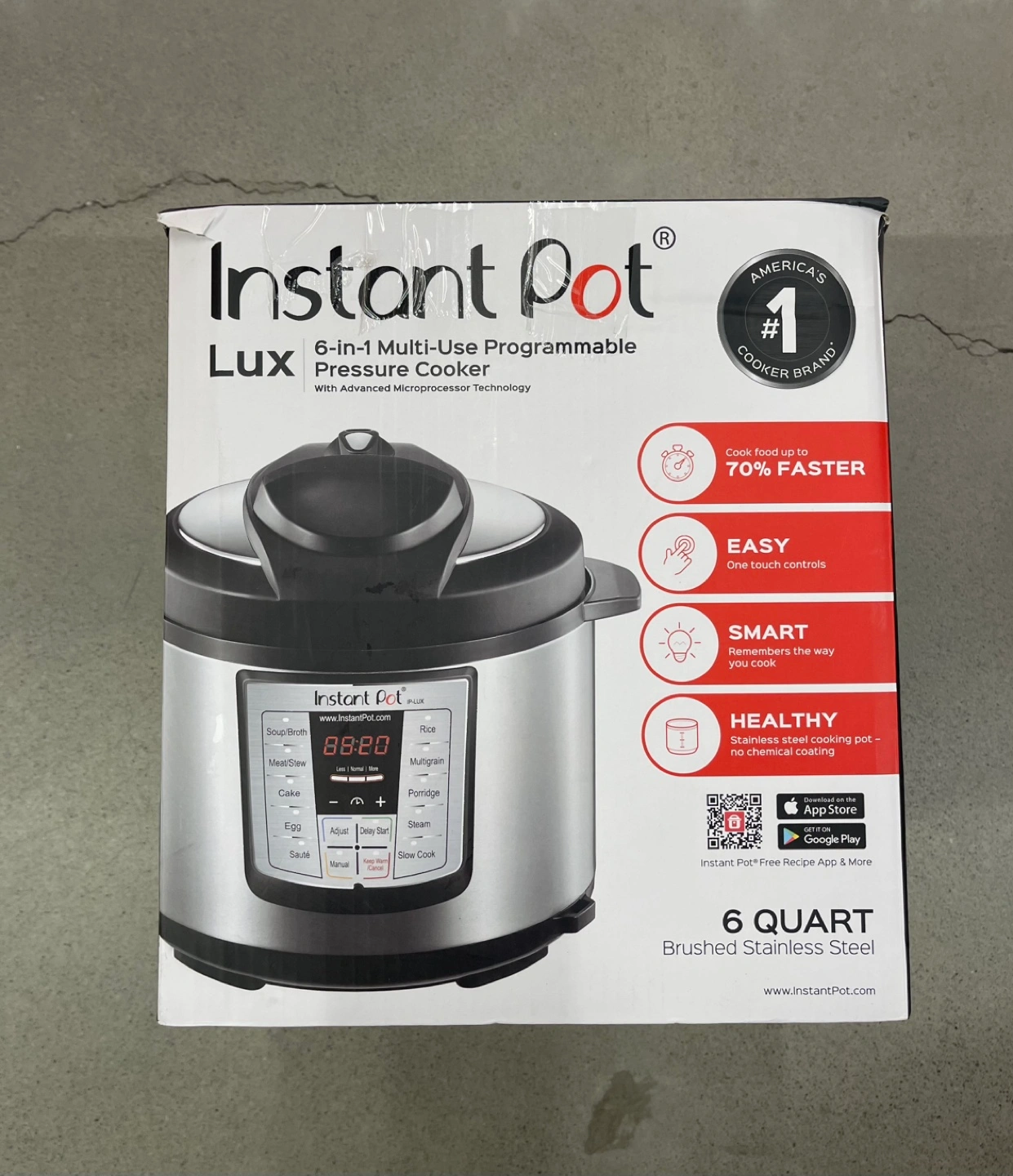 Used 3 Times. 6-quart capacity. Brushed stainless steel. Multiple functions: pressure cooking, slow cooking, rice cooking, steaming, sautéing, and cake making. Includes accessories.