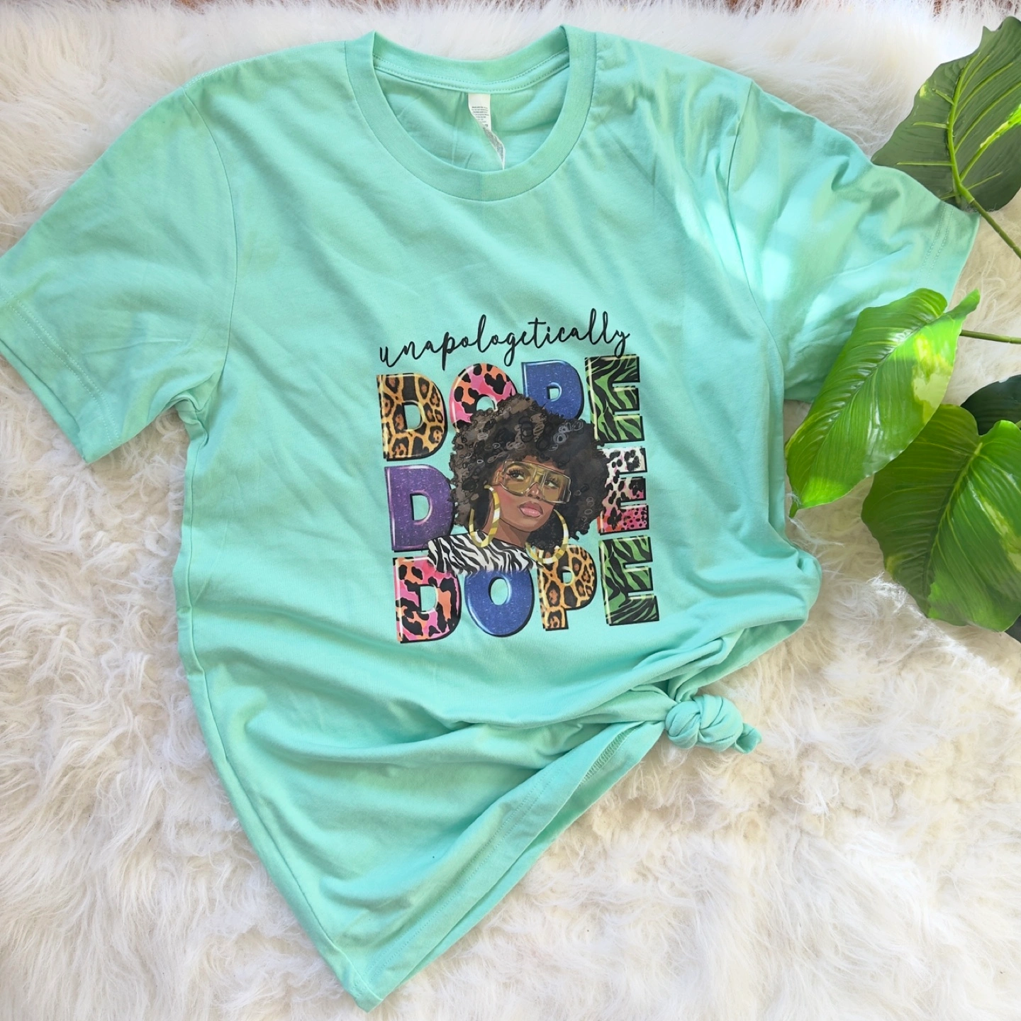 short sleeve customised tees. Various colours and designs featuring empowering messages and illustrations of Black women. Brand new in Good condition.