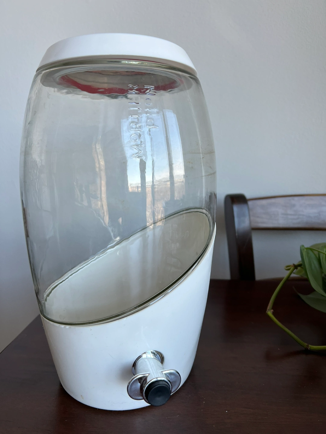 White Mortier Pilon Jar used thrice only. Their current retail is $60 + tax. This is one of their best sellers and all units sold out. At ShopBobby the list price was $81 and all units sold out. Last image is from Amazon where it’s sold out as well. I used this for brewing Kombuncha once and the other two times it served well as a drink dispenser for guests at my BBQ lunch gathering. Saved the hassle - easy refill for my guests. It’s lightweight and easily portable. Makes for a useful gift. Cash only. Pick up please. See less