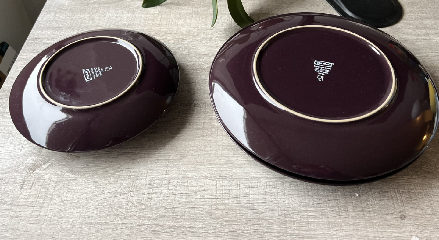 IKEA FÄRGKLAR Deep Maroon dinnerware set pieces - EACH FOR $1. I am listing 3 large plates, 2 side plates and 5 bowls. You can buy one or combination of items. Large plate = dia. 26 cm Side plate = dia. 20 cm Bowl = dia. 16 cm, height 6 cm Microwave safe and Dishwasher safe. If you’re a student or a working professional who travels a lot and don’t spend much time at home, these might be right fit for you in terms of investment and quality. That aside, these are for everyone! Personally for me goes with rustic/modern theme. Rated 4.5/5 on IKEA. Cash only. Pick up. See less