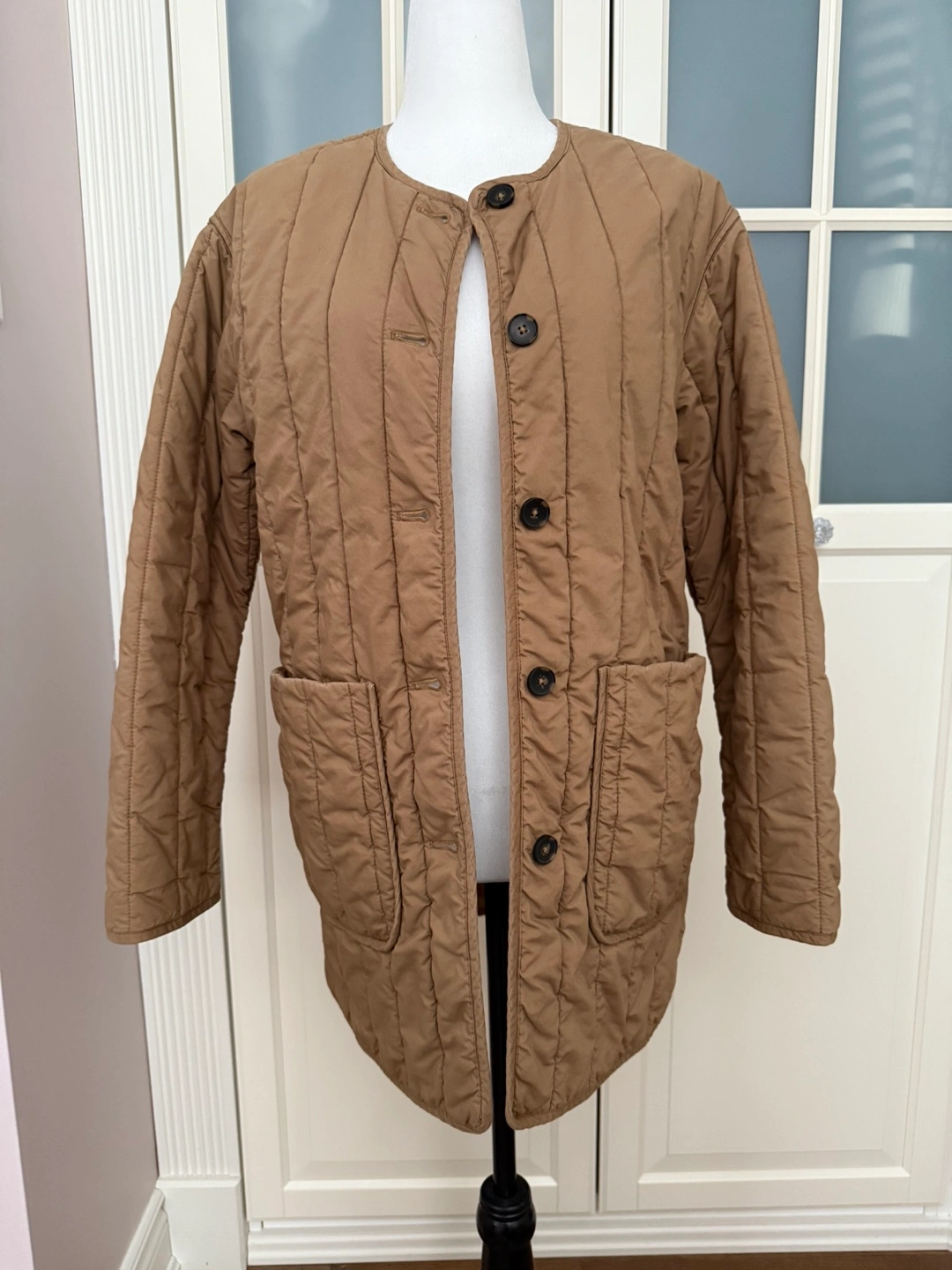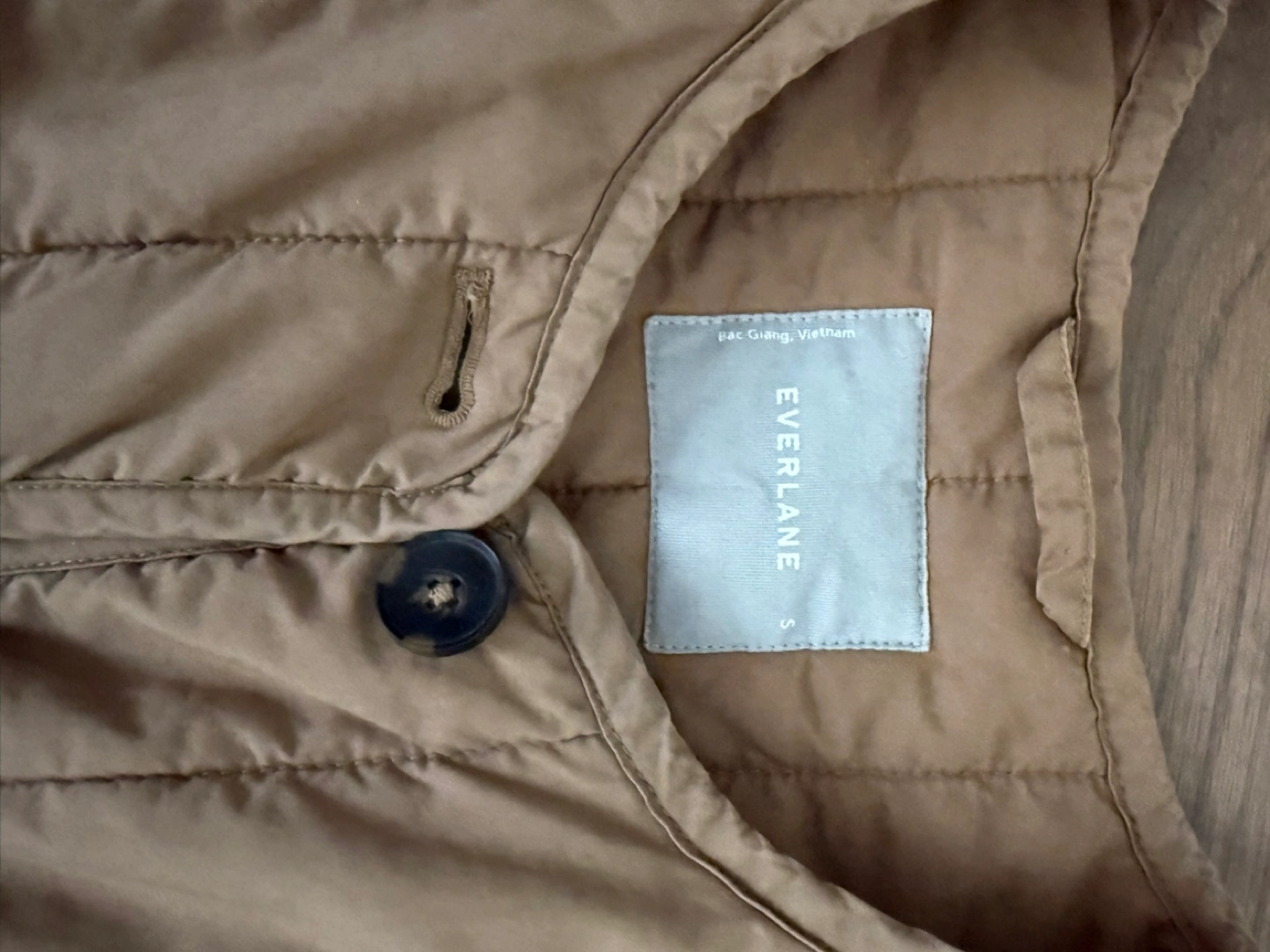 ‼️ c l o s e t c l e a n o u t ‼️ ➡️ check out my other listings ➡️ sizes from small to large ➡️ possibility to bundle 🚫 smoke-free home / no pet hair 📍 pick up near Greenbank / Hunt Club LOVE this Everlane jacket!! Recently purchased on Poshmark for $95 but sadly too snug for me. Camel colour (first pic is true colour) Shell - 100% cotton Filling - 100% recycled polyester Button closure (with spare button) Side pockets. Size small (pit to pit is 20 inches) Thank you for your interest! Merci de votre intérêt !