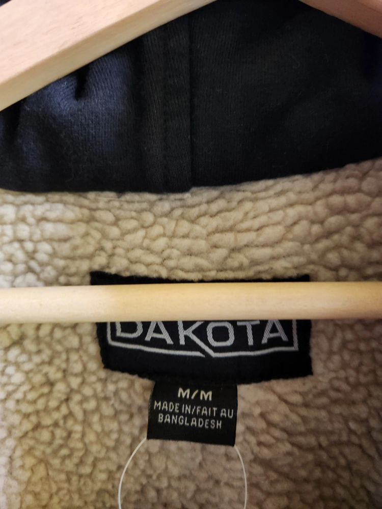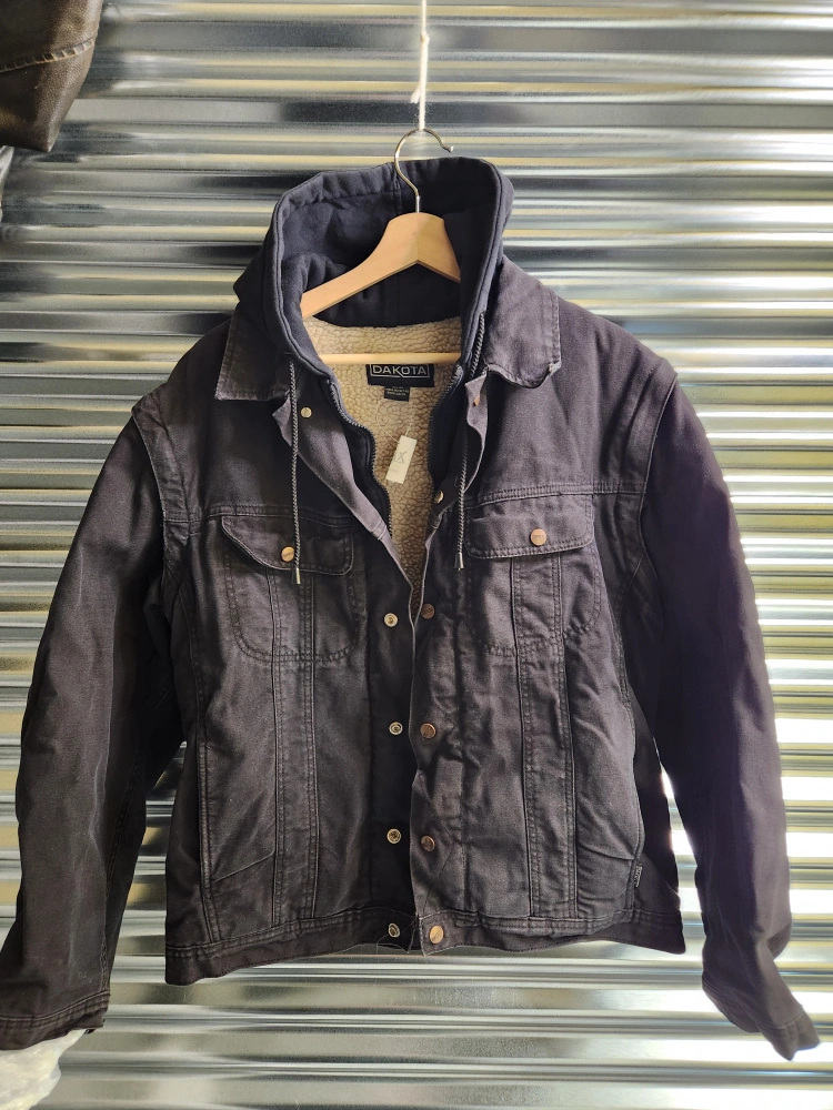 Men's hooded denim jacket. Size medium. sherpa Lined. Black colour. Multiple pockets. in good condition Pick up location close to Lansdowne and bloor