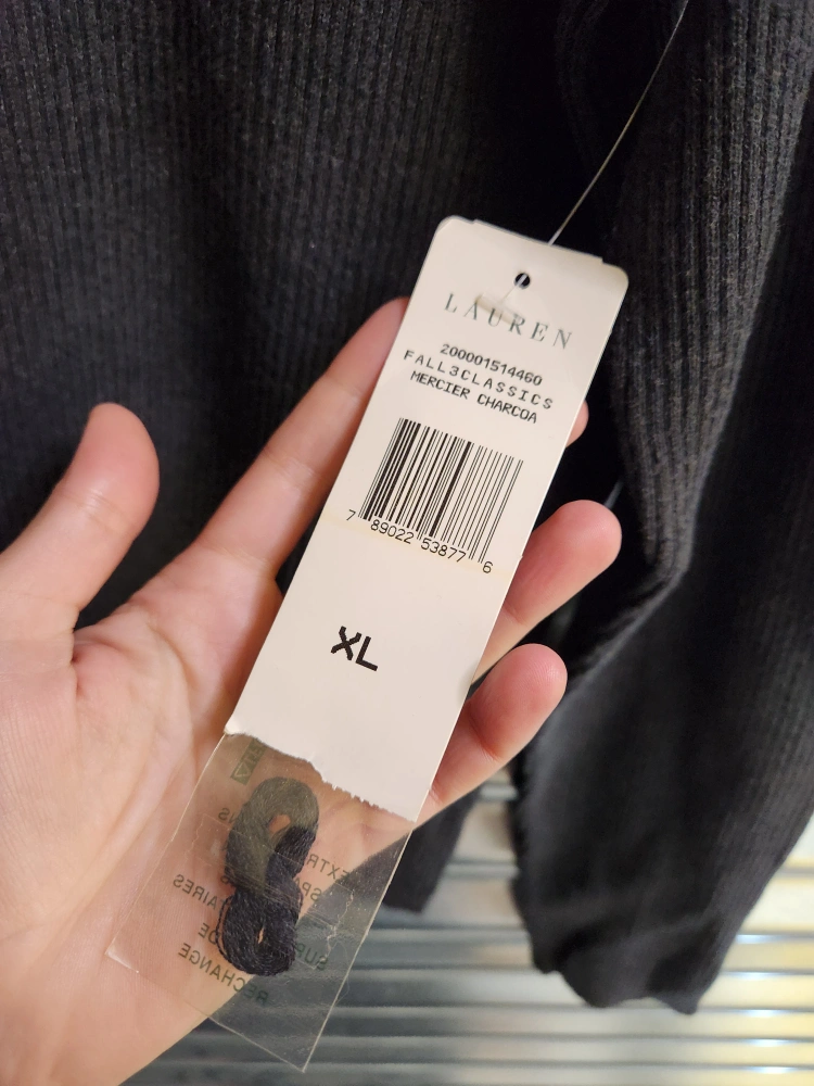 Charcoal grey ribbed turtleneck sweater. Long sleeves. Size XL. New with tags. perfect for spring, it could suit a casual or elegant outfit. Pick up location close to Lansdowne and bloor