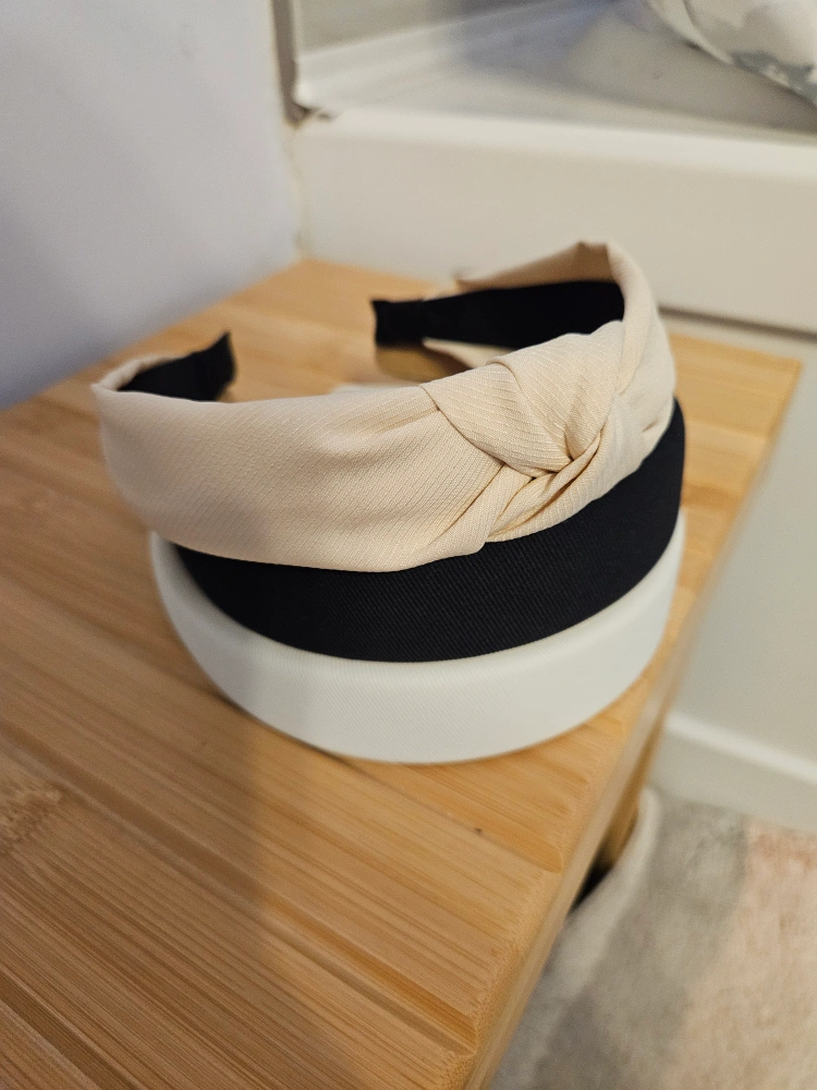 Set of three headbands. One black, one beige, and one white. Two are knotted, one is plain. Comfortable to wear. Great for everyday use or special occasions. Payment: Cash Meet up: Dovercourt park or dufferin station! ♡