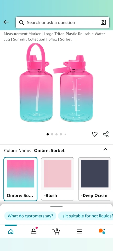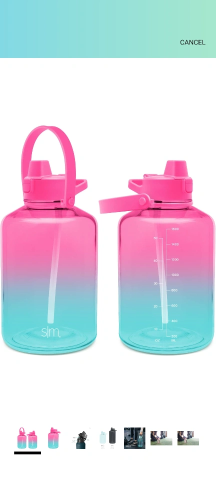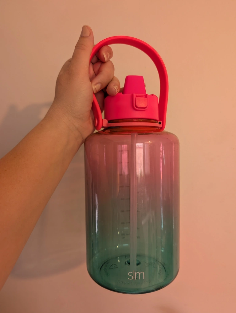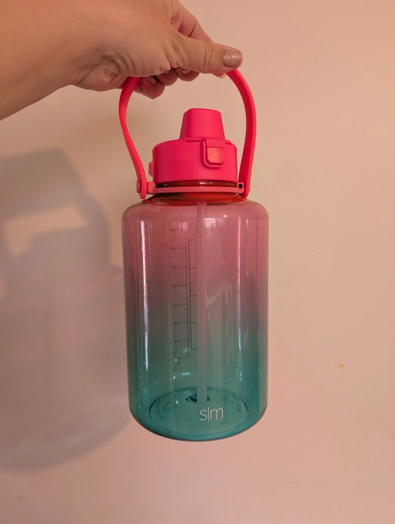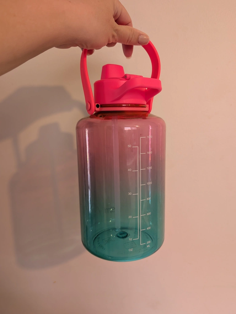 Large Tritan plastic reusable water jug. Features a carry handle and measurement markers. Ombre Sorbet colour. Pickup only St Clair East and O'Connor