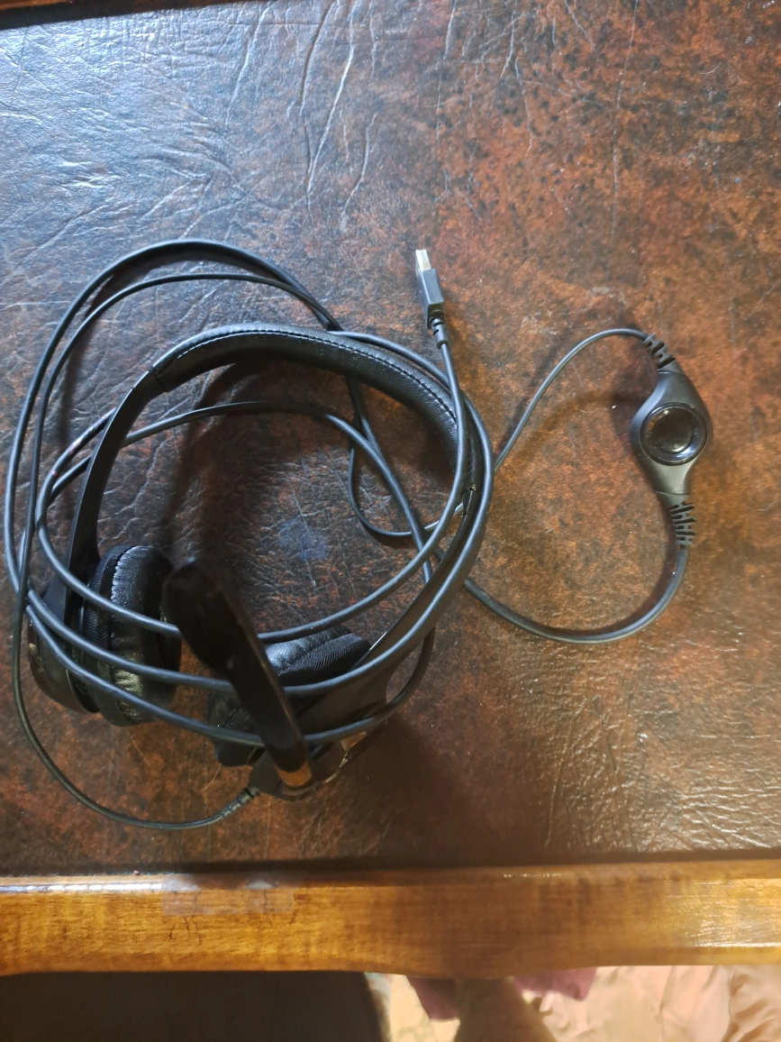 Wired headset. Black colour. USB connection. Includes microphone.
