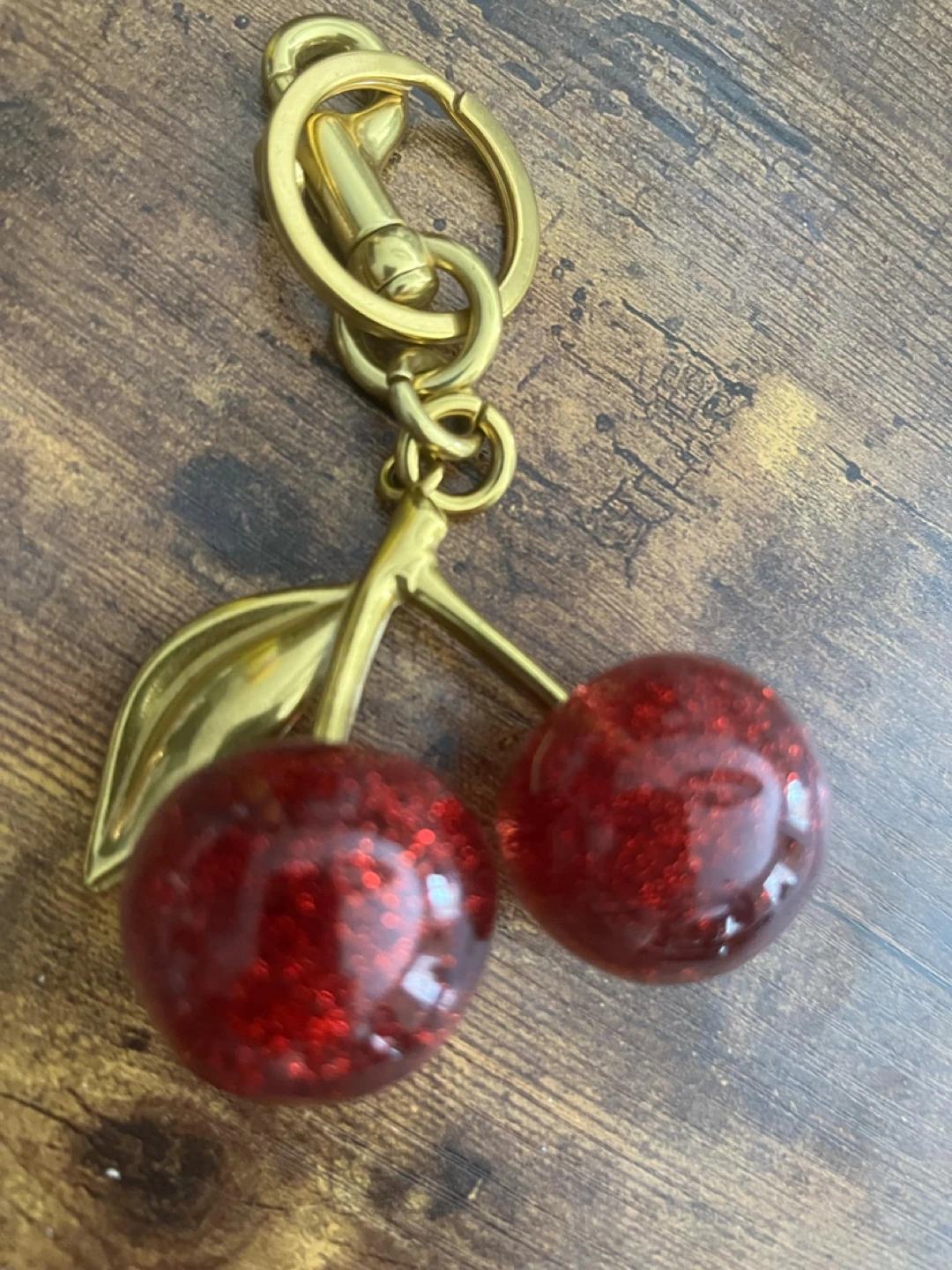 Adorable purse/phone/key charm. Features two red glitter cherries with gold accents. Gold-toned metal. Great for bags or keys. McCowan and 16th porch pick up ONLY. Cash ONLY. *** MOVING SALE…. See all my other items. Many are only $5.