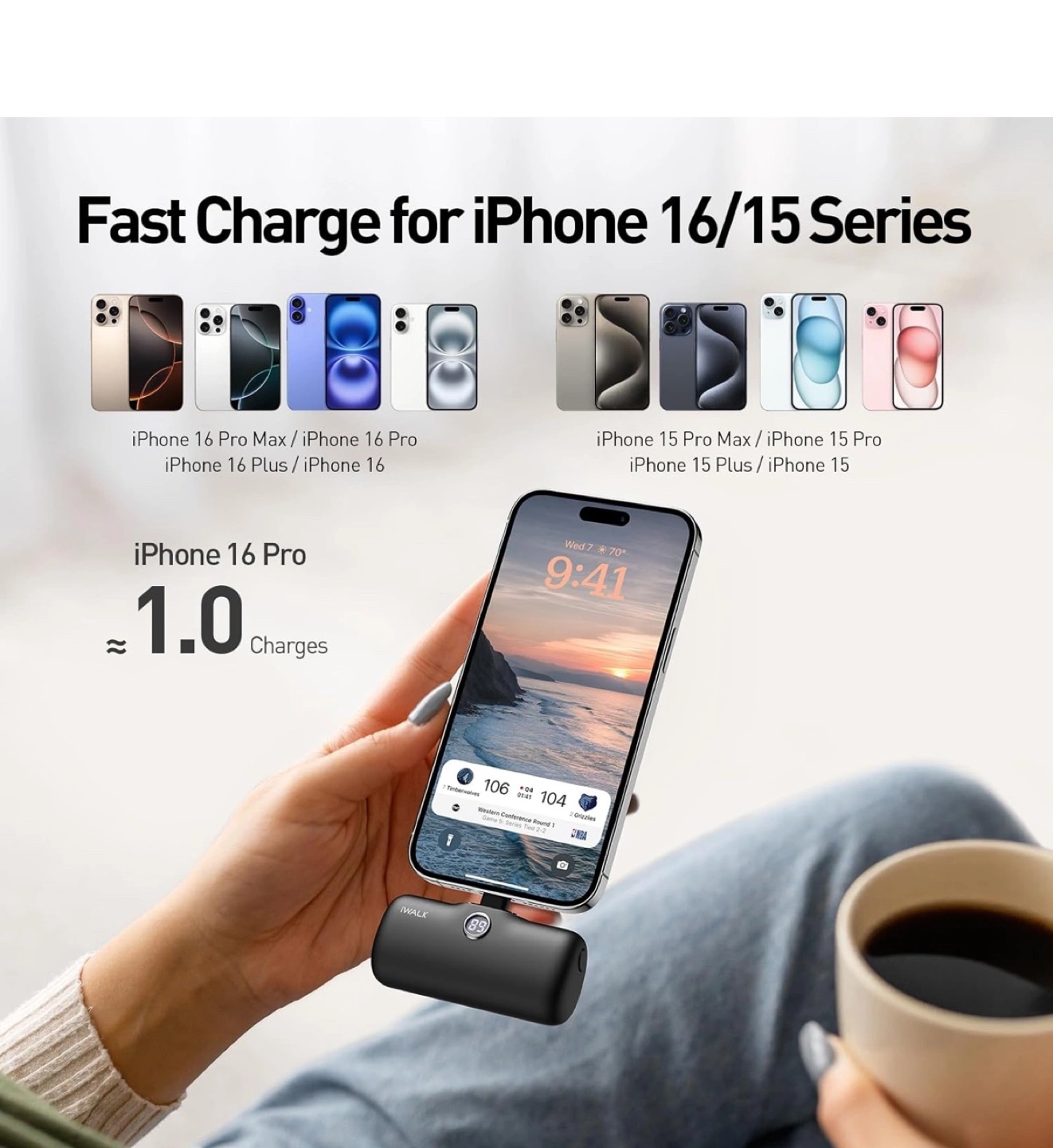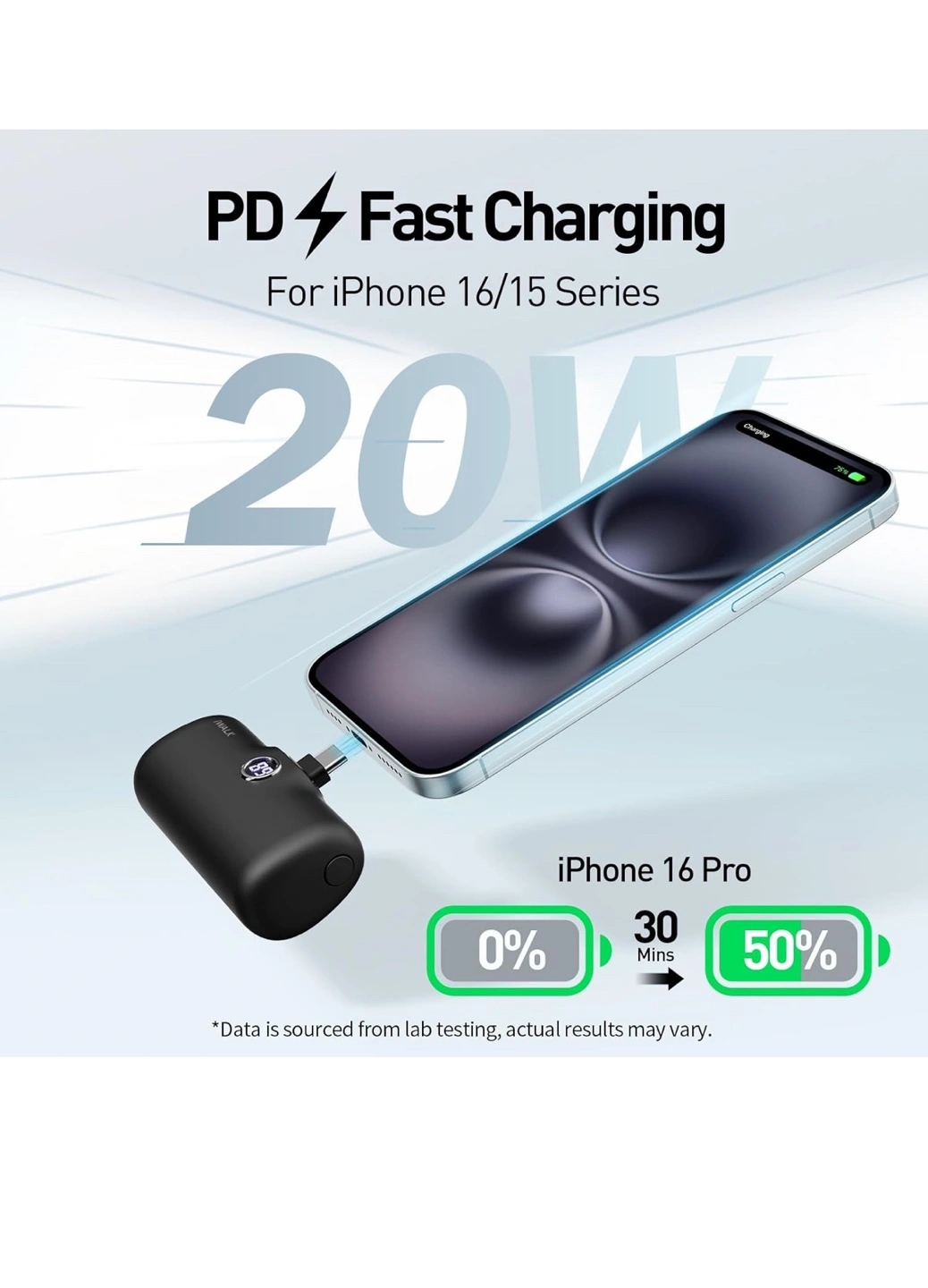 Black portable charger. Fast charging. Compatible with iPhone 15/16 series and other USB-C devices. Small and convenient. Doesn’t include charging cable. I bought the wrong type for my phone and got rid of the box so can’t return. UNUSED. Retails for $30 new on Amazon. LOCATION: This item is for pickup at my home near King St West and Jameson Avenue in Parkdale (exact address only given for confirmed pickups).