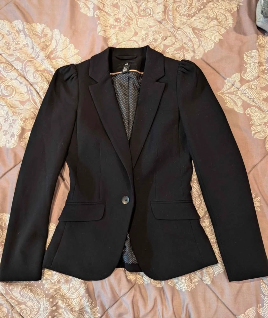 Women's black blazer. Puff sleeves. One button closure. Good condition.