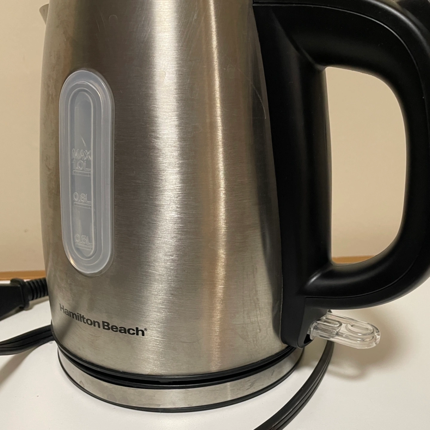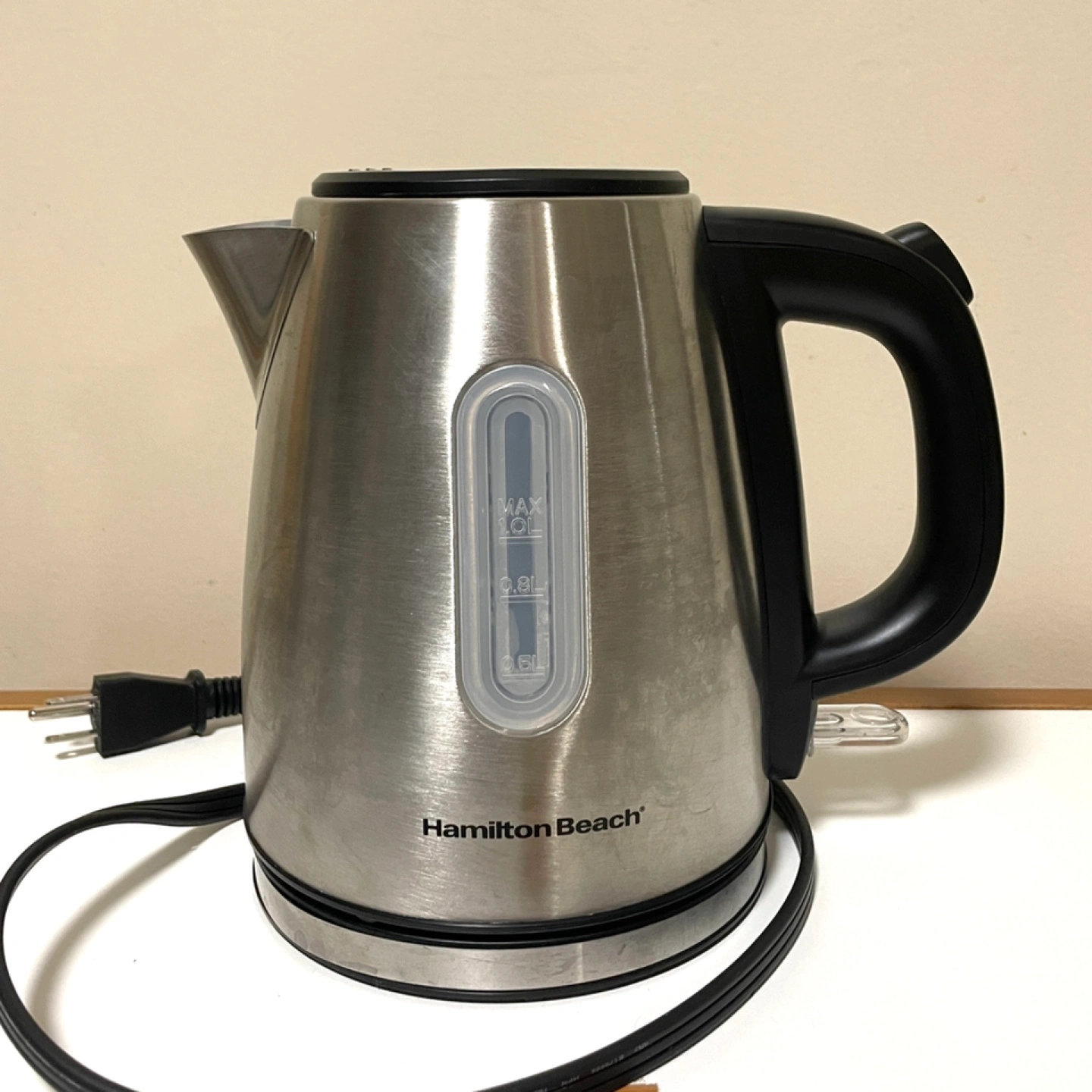 Stainless steel electric kettle With water level indicators Spotless clean Only used once No flaws Retail: $35 + taxes Just Decluttering