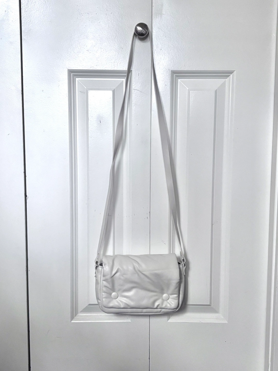 - white crossbody bag w/ strap - magnetic snap closure - used once, in good condition cash only