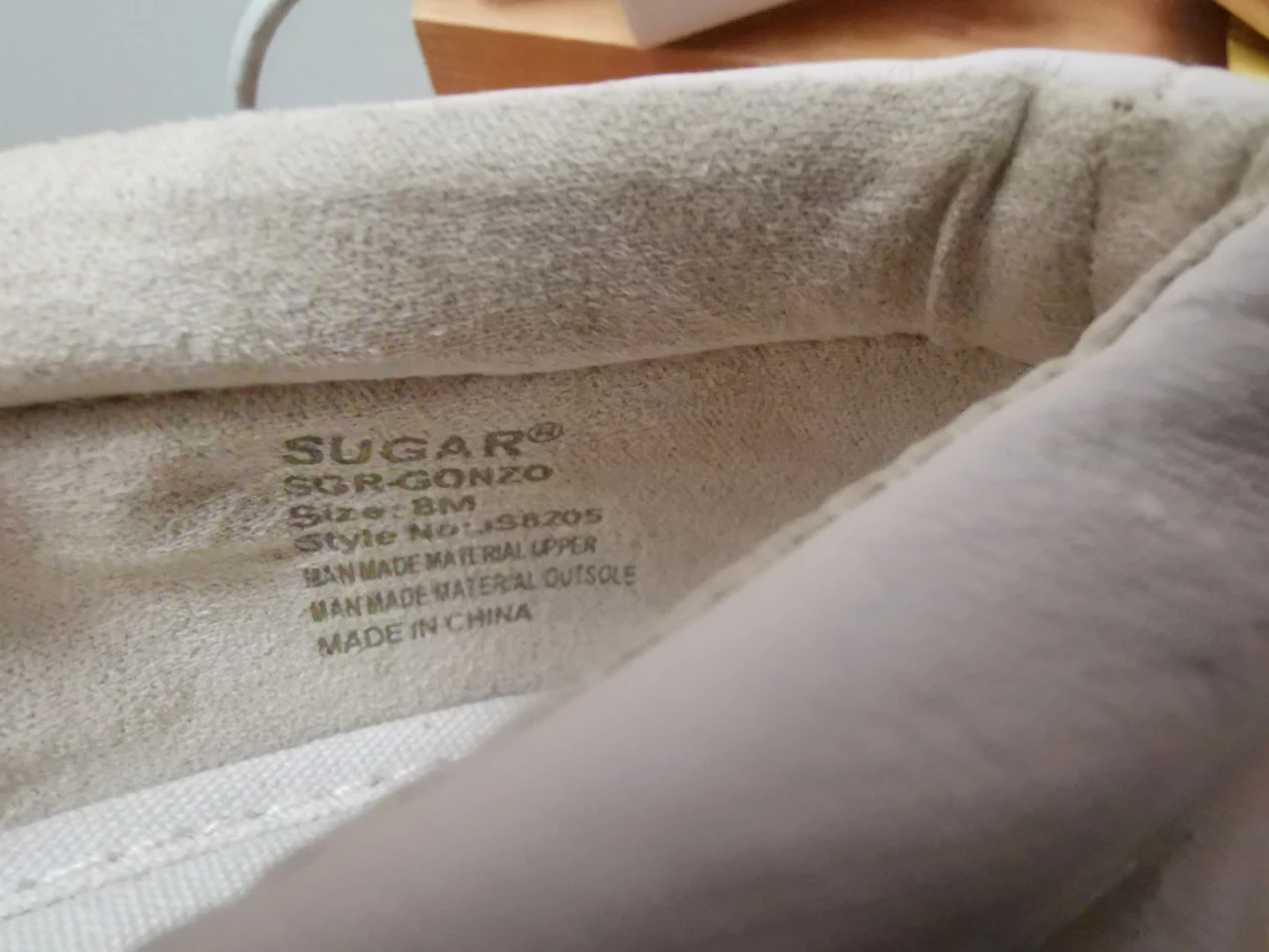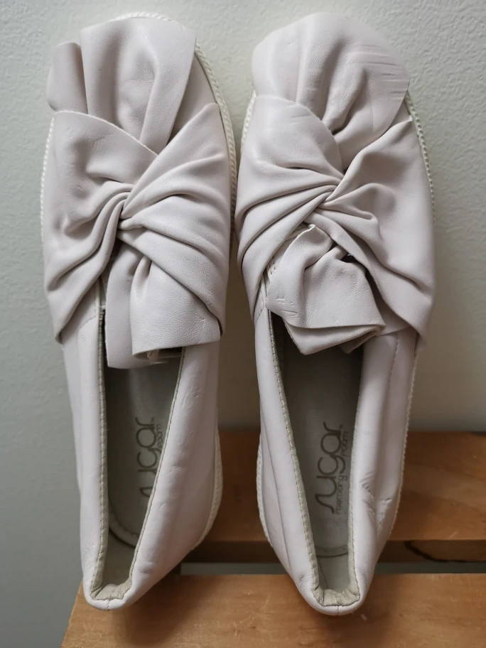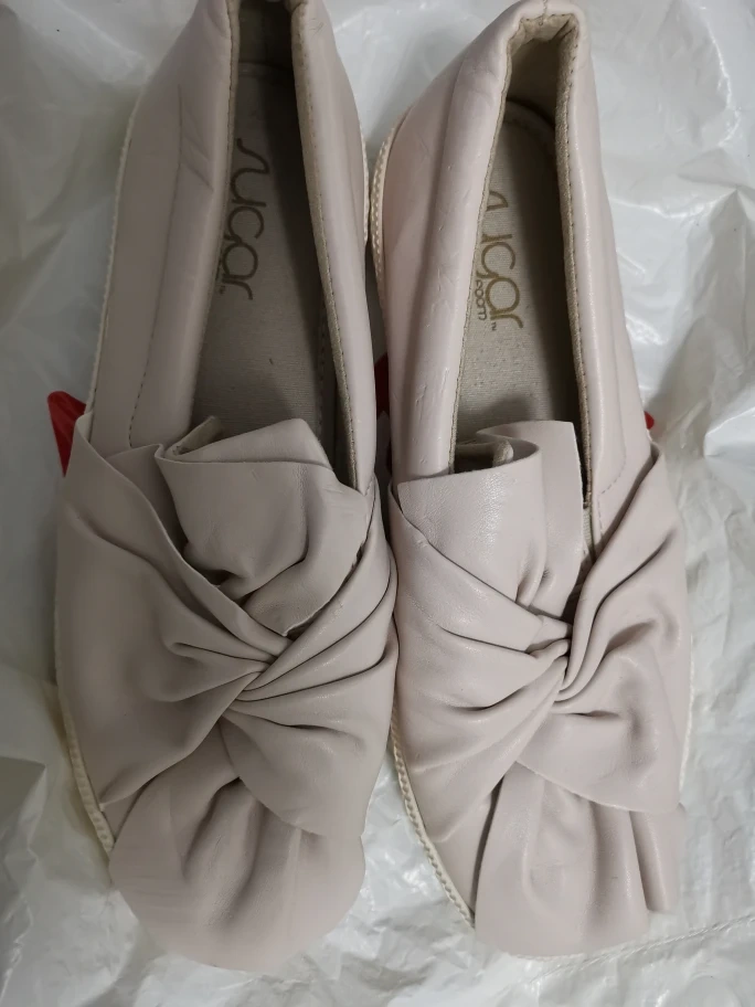 Brand newSugar brand slip-on shoes. Pale pink colour. Bow detail on the front. Man-made upper and outsole. Made in China.. Bought for my mum but she didn't like it so am selling it pet and smoke free home