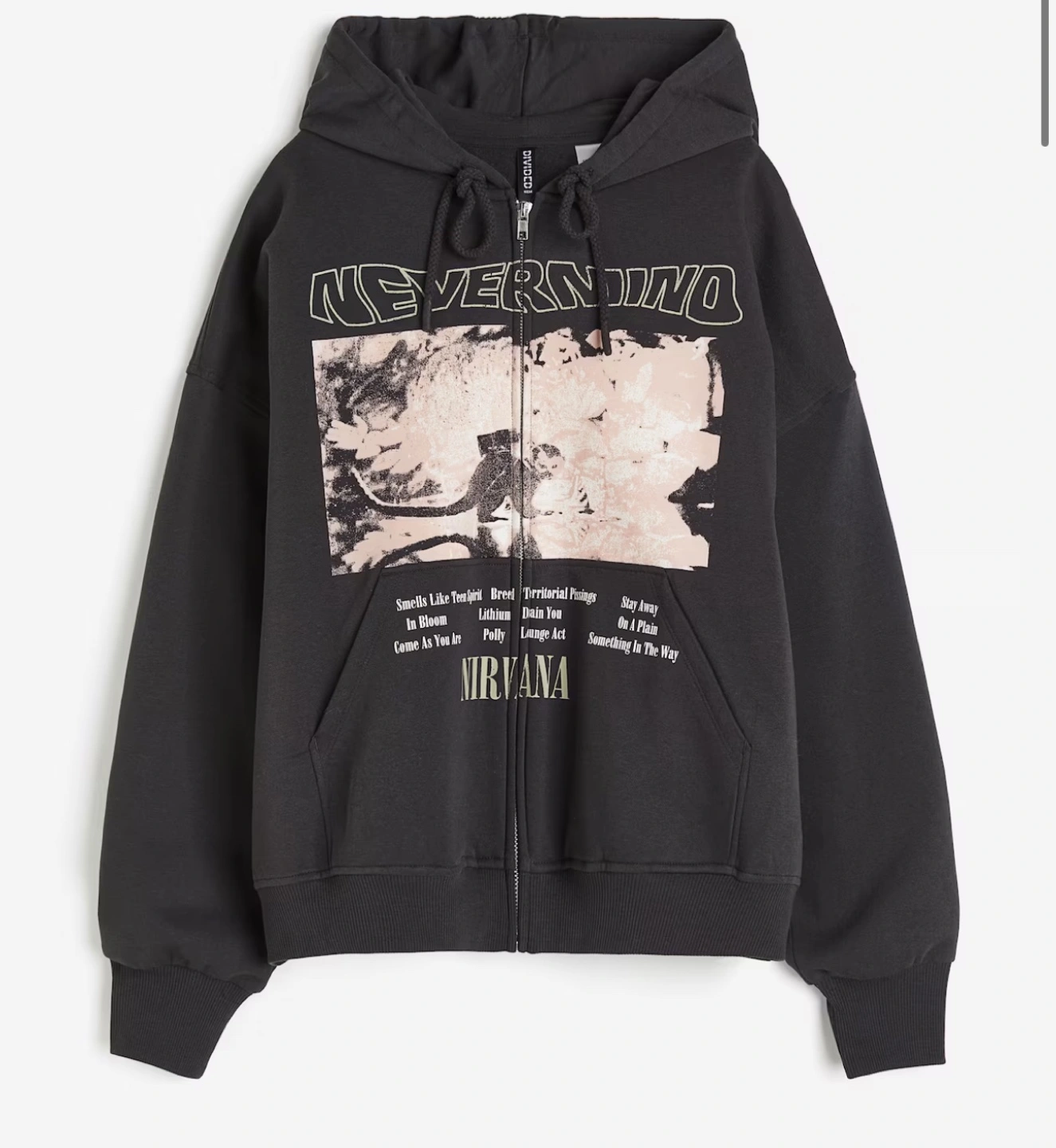 Brand new Oversized hooded sweatshirt jacket with a printed design and soft, brushed inside. Jersey-lined, drawstring hood, concealed zipper at front, and front pockets. Heavily dropped shoulders, long sleeves, and ribbing at cuffs and hem.