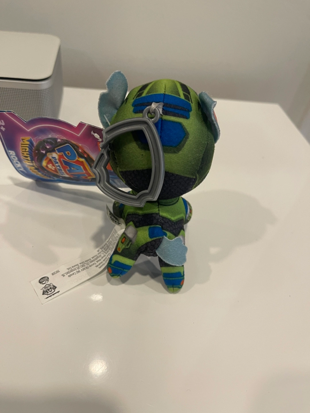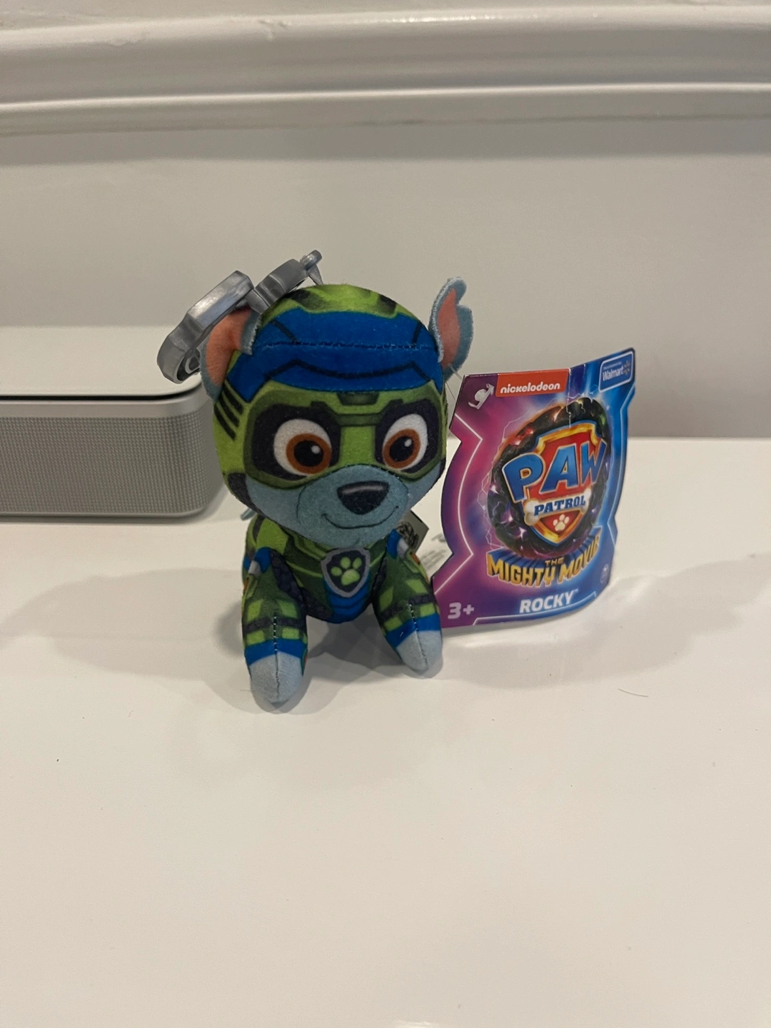 Adorable Rocky plush keychain. Part of the Mighty Pups collection. Small and collectible. Perfect for bags or keys.