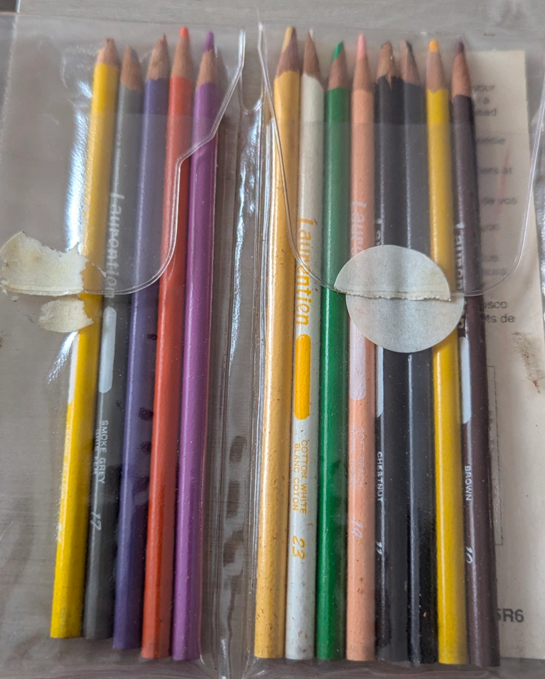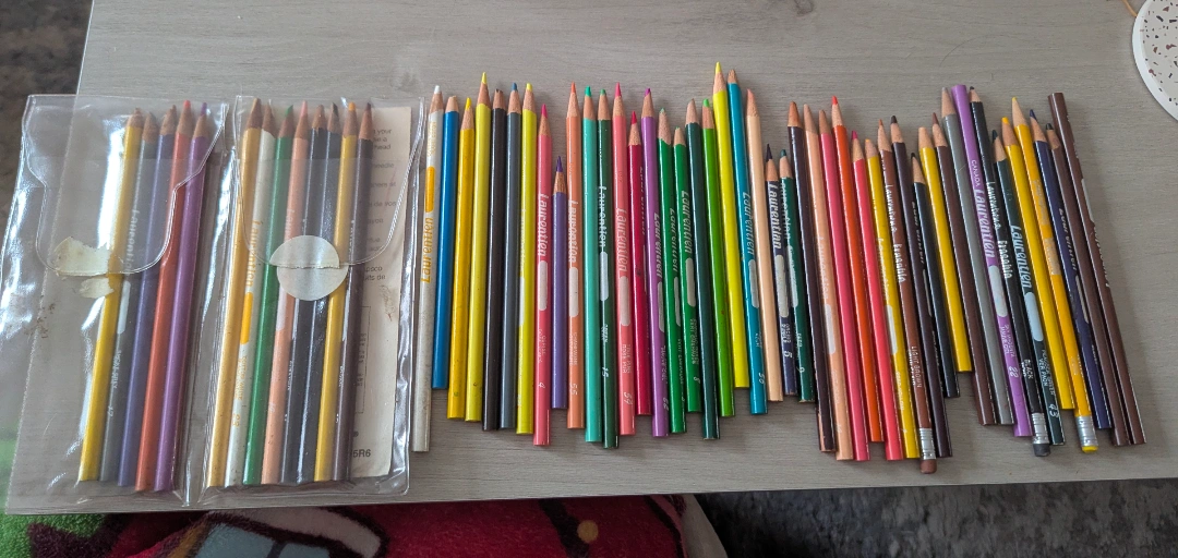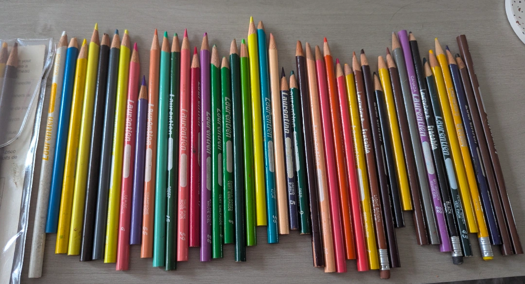 Large collection of Laurentian coloured pencils (58 total pencil crayons). Various colours and shades. Some pencils in original packaging. Perfect for artists and crafters.