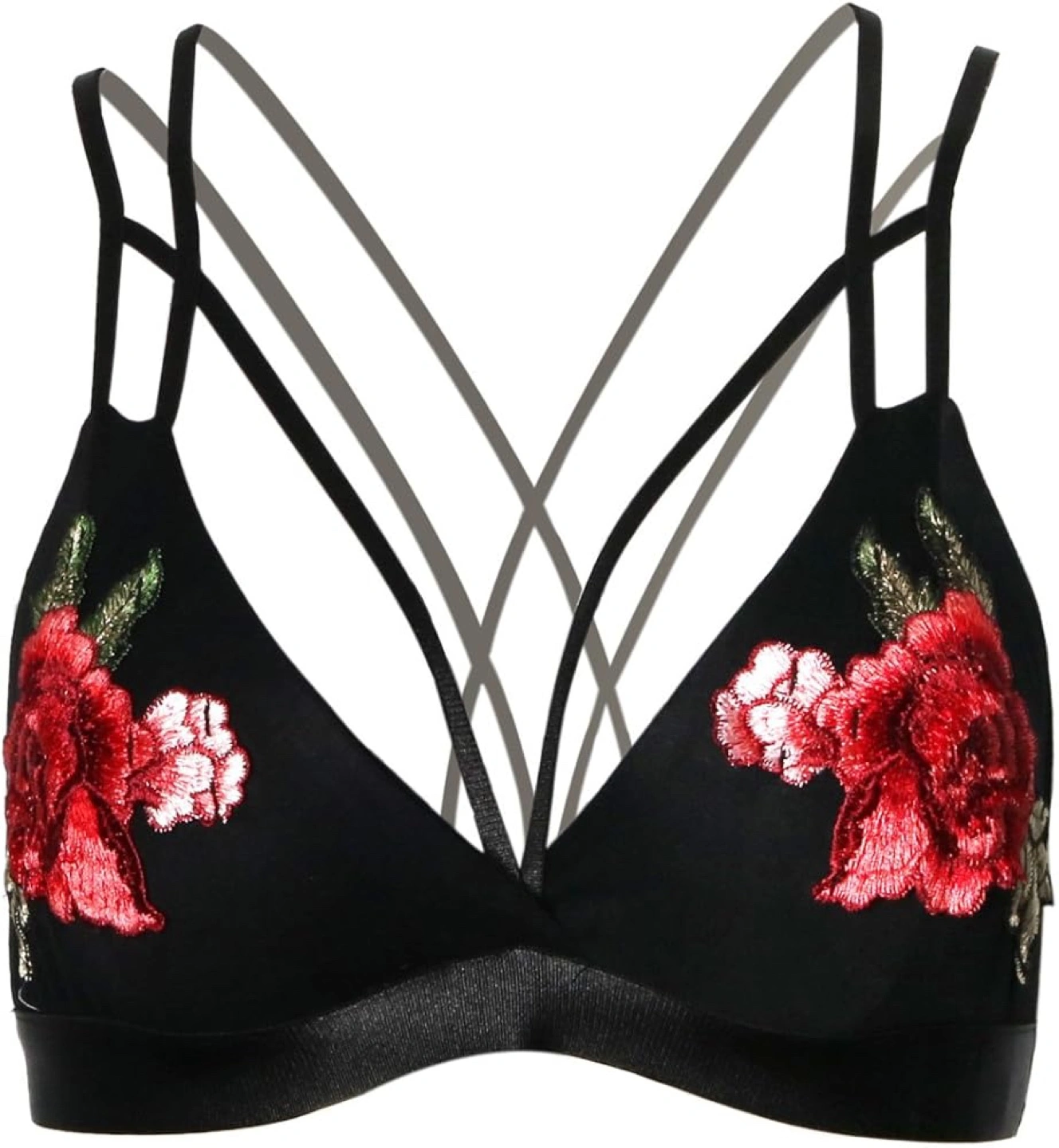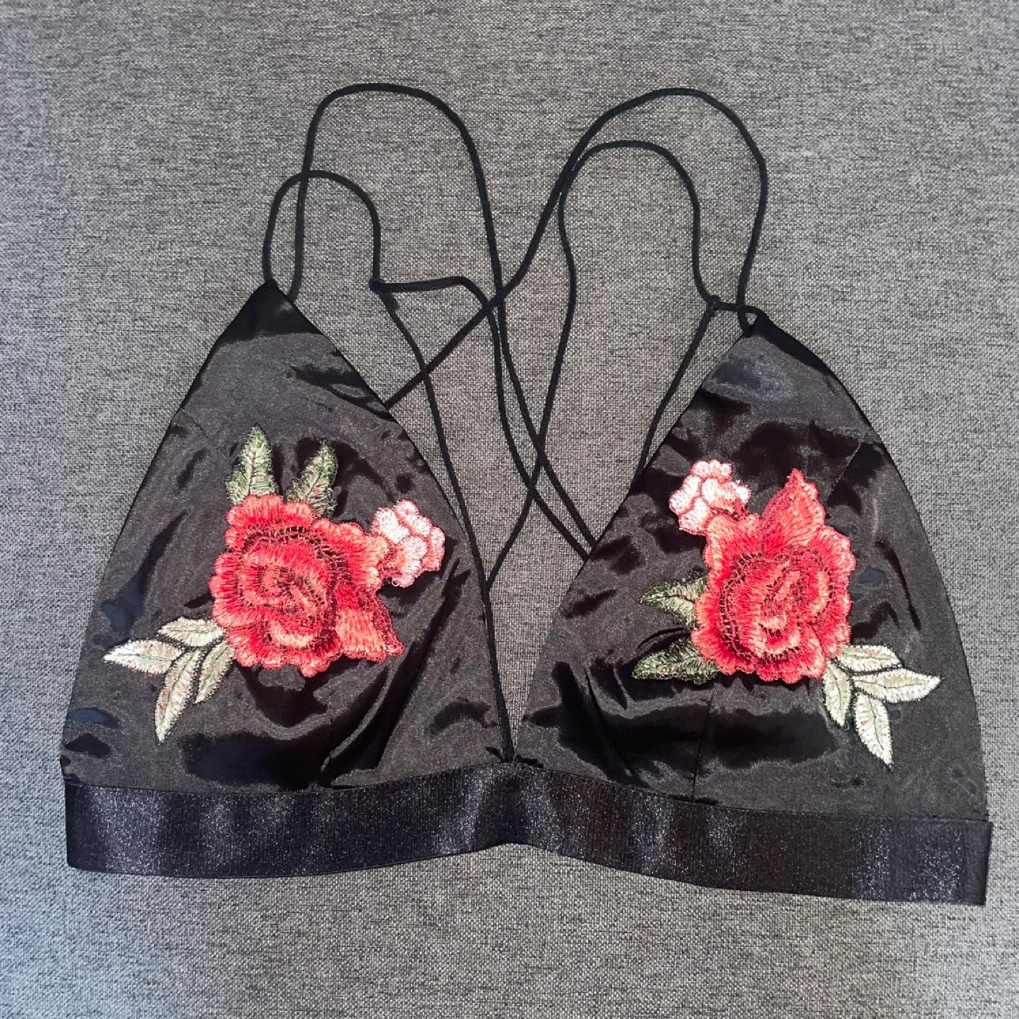 Elegant black bralette with floral embroidery, perfect for adding a touch of sophistication to your intimate collection. Size: L • 10/10 Condition⭐️ Tried it on and doesn’t fit