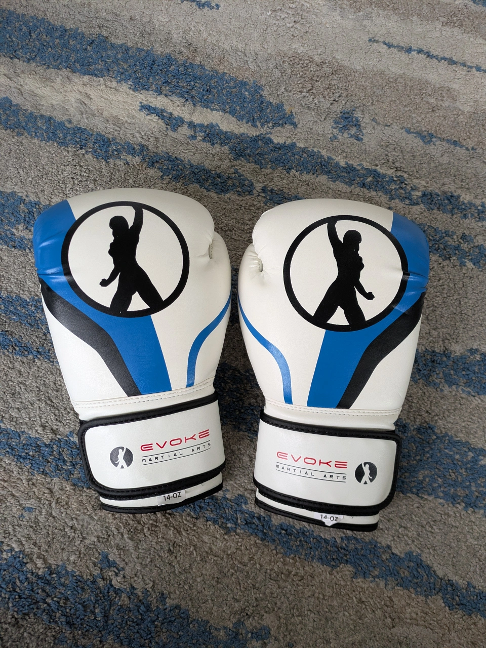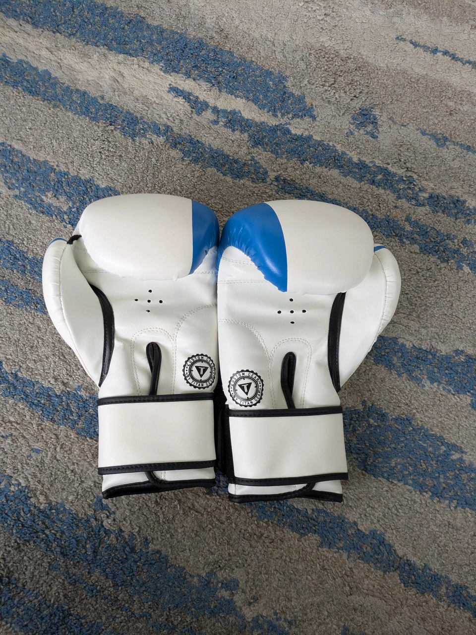 Pair of 14 oz boxing gloves. White with blue accents. No scuffs or defects. Moving sale - check out my other listings ✨ Pickup at Yonge & Eglinton or downtown on weekdays.
