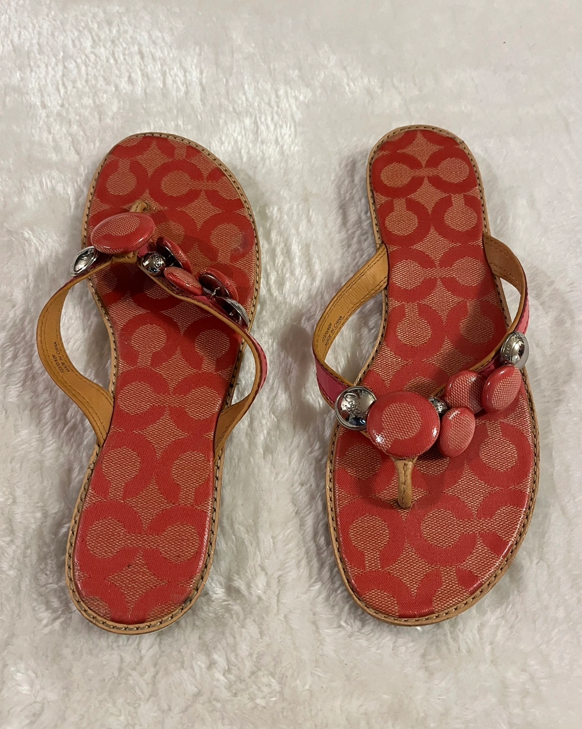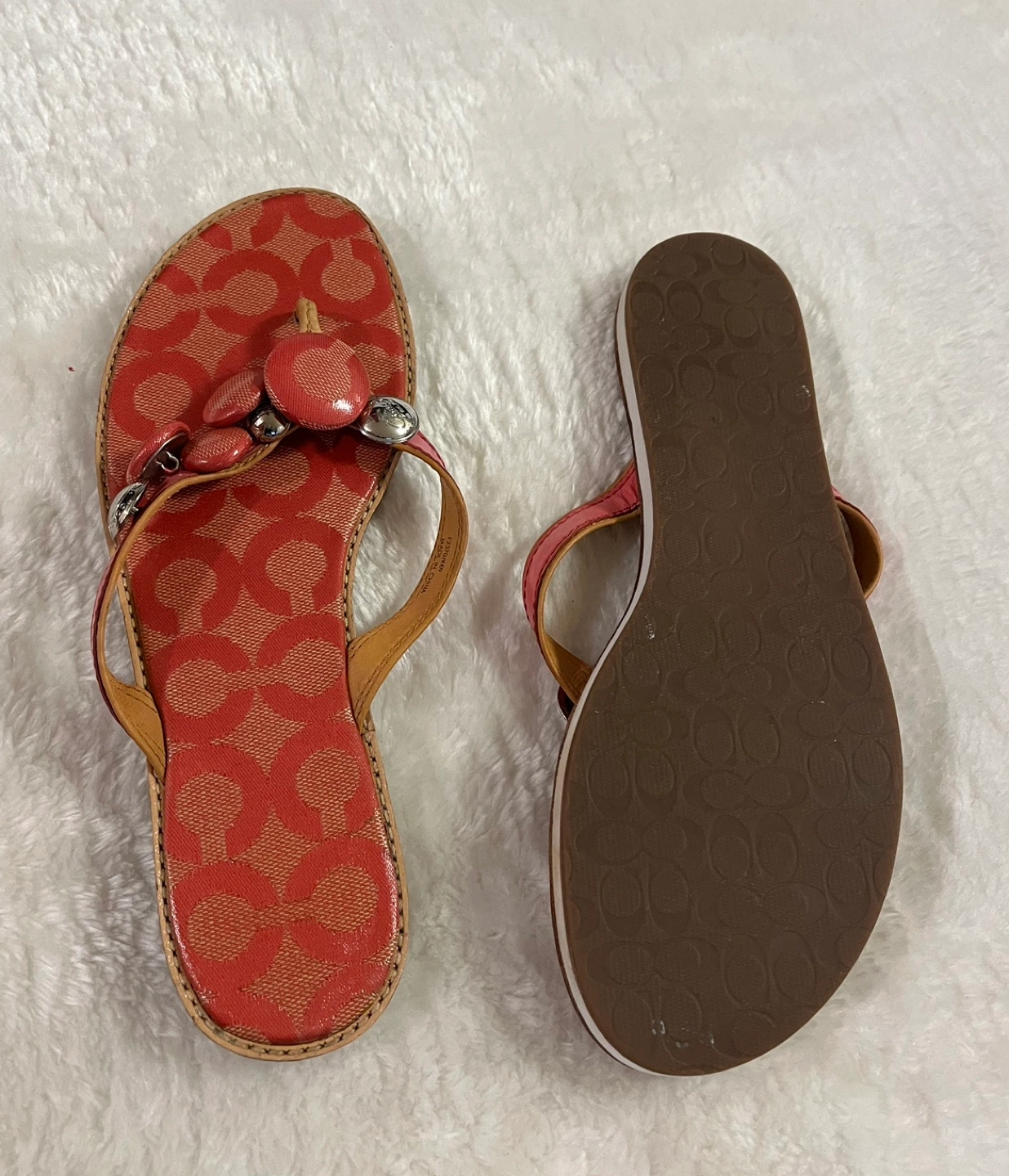 Women's Coach flip flops Pink leather and fabric Excellent condition Pick up Bloor and Islington Etobicoke