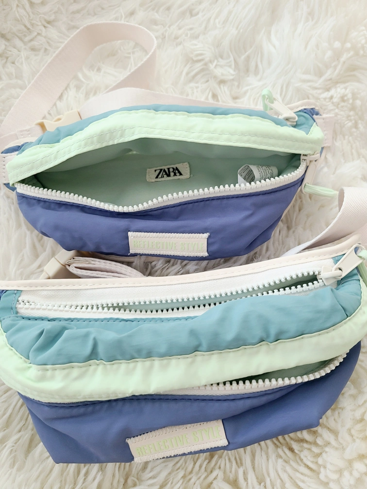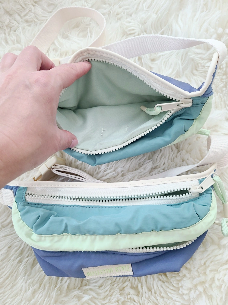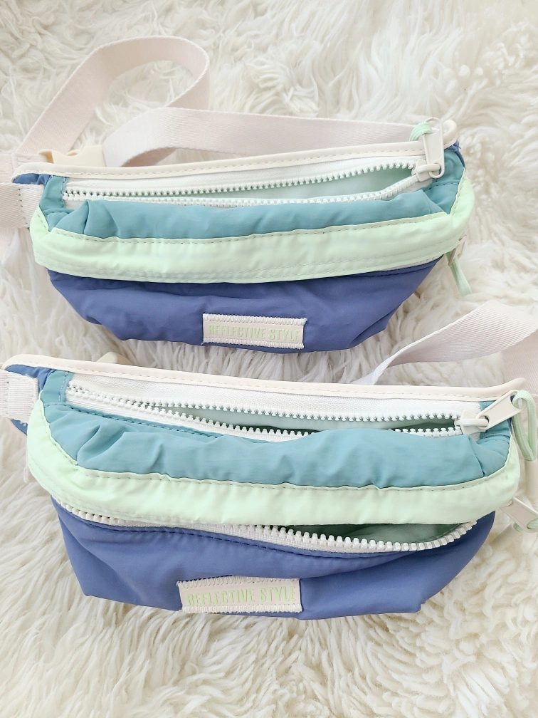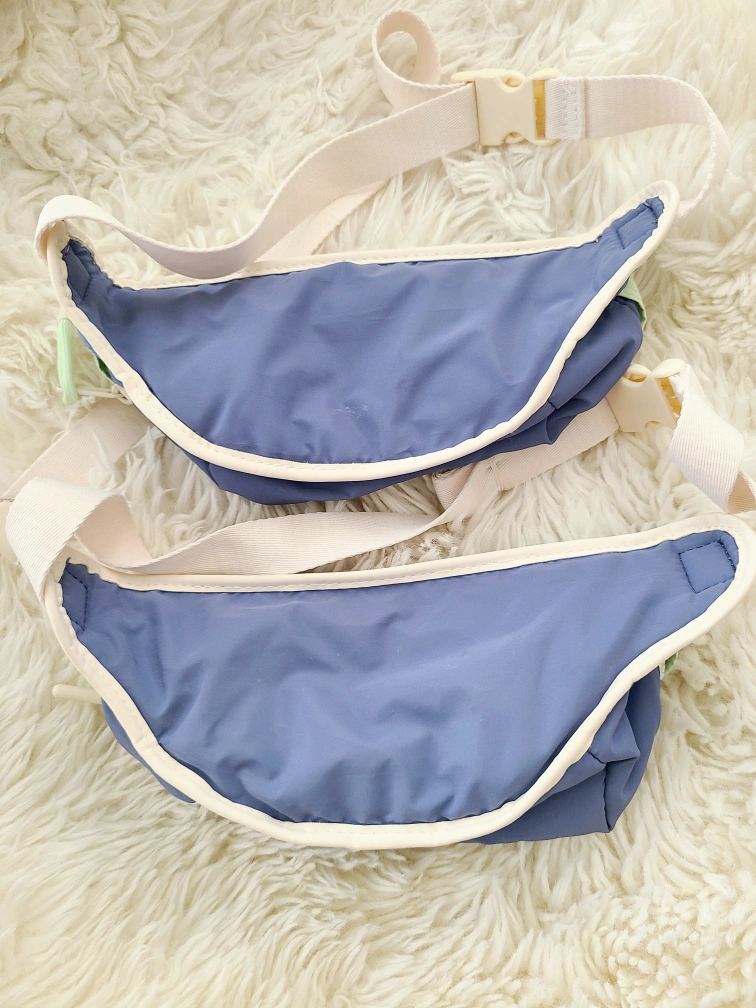 Two pastel coloured fanny packs -$10 each Adjustable straps. Zipper closure. Multicoloured design.