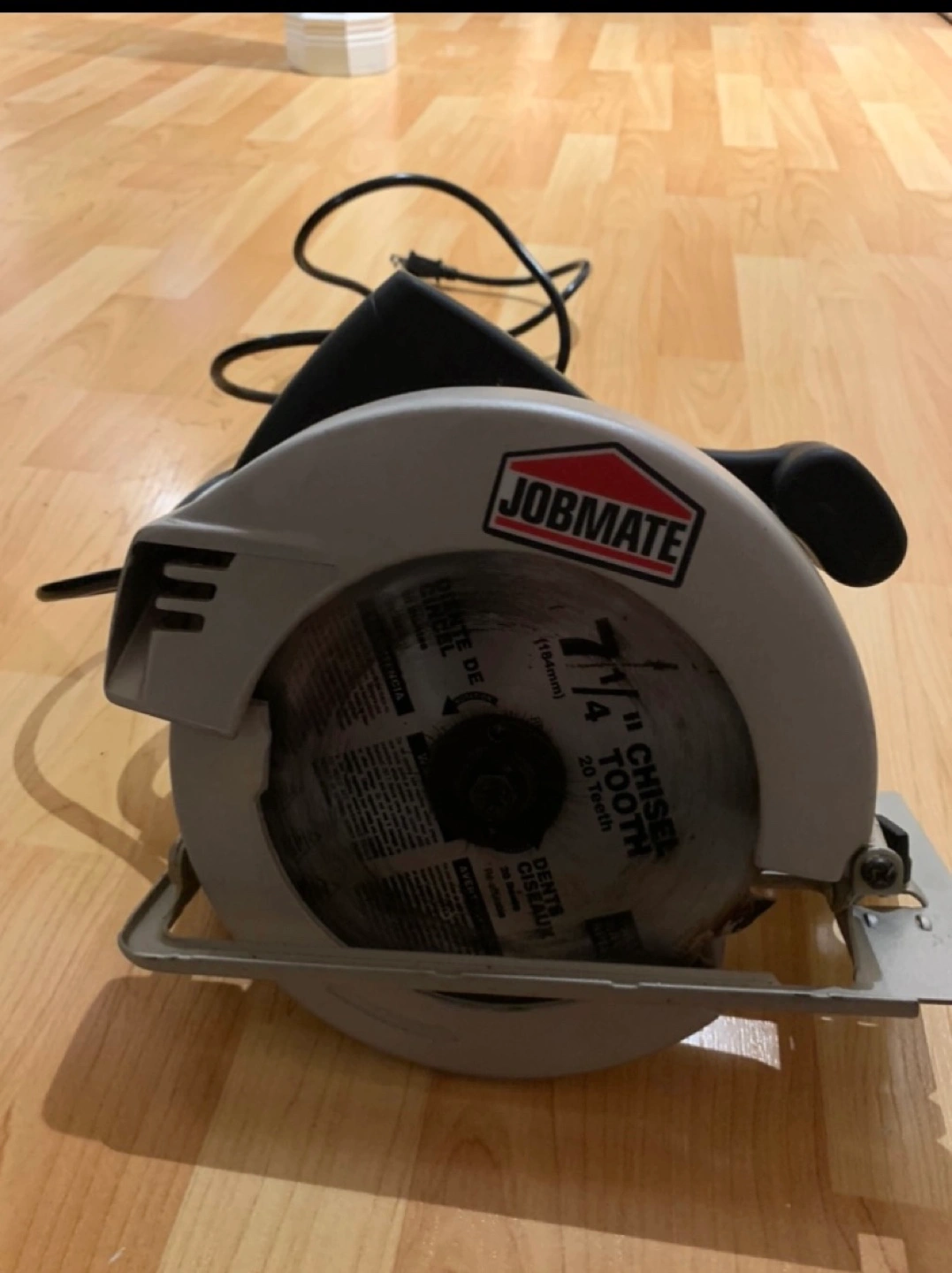 Used Jobmate circular saw. 7 1/4 inch blade. Includes power cord. Shows some wear.Otherwise in great shape.