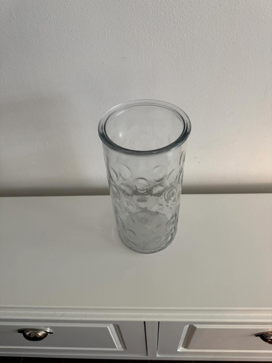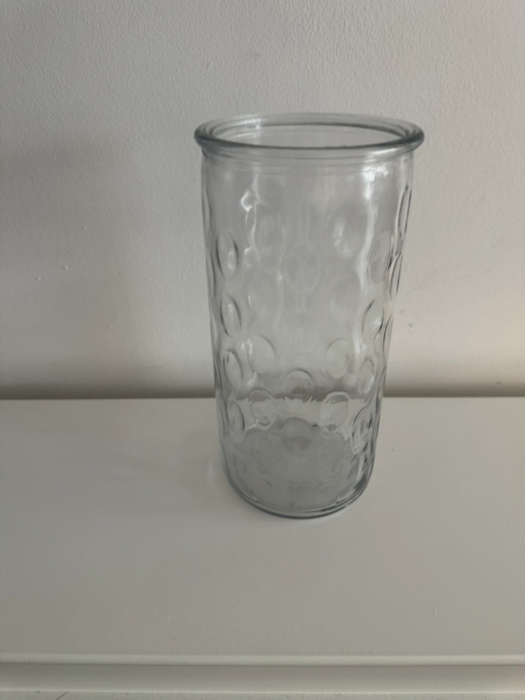 Elegant clear glass vase. Features a textured, bubbled design. Perfect for displaying flowers or as a decorative accent. Flowers Not included. 9.75 inches tall. Pick up at Bathurst/Steeles North York