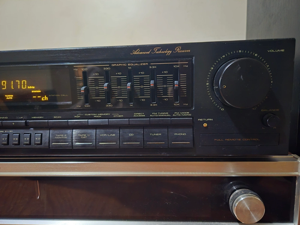 Vintage stereo receiver. Graphic equalizer. Multiple audio inputs. Good cosmetic condition. Speaker outputs tested and working no other testing has been done