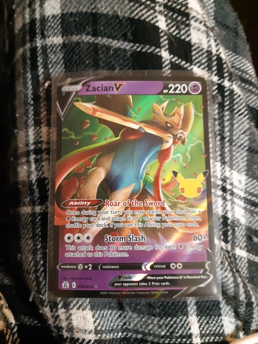 Pokemon card featuring Zacian V. Rare card. Great addition to any collection. Numbered 016/025. Smoke free home Cash or etransfer. Pick up in Oakville. Please check out my other listings.