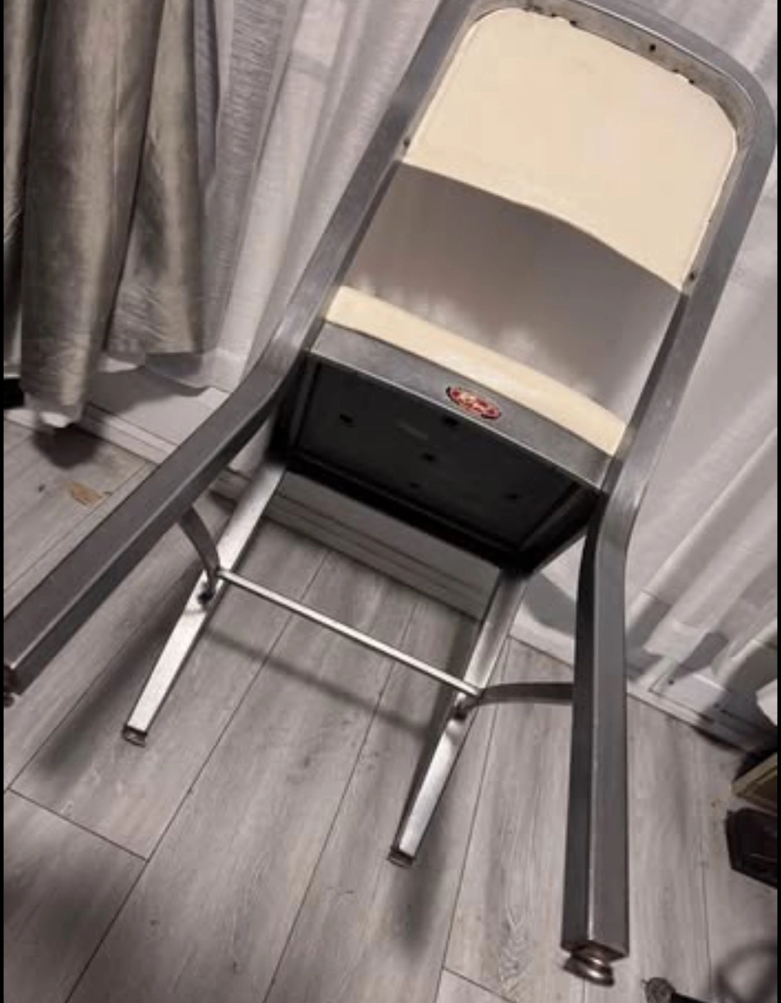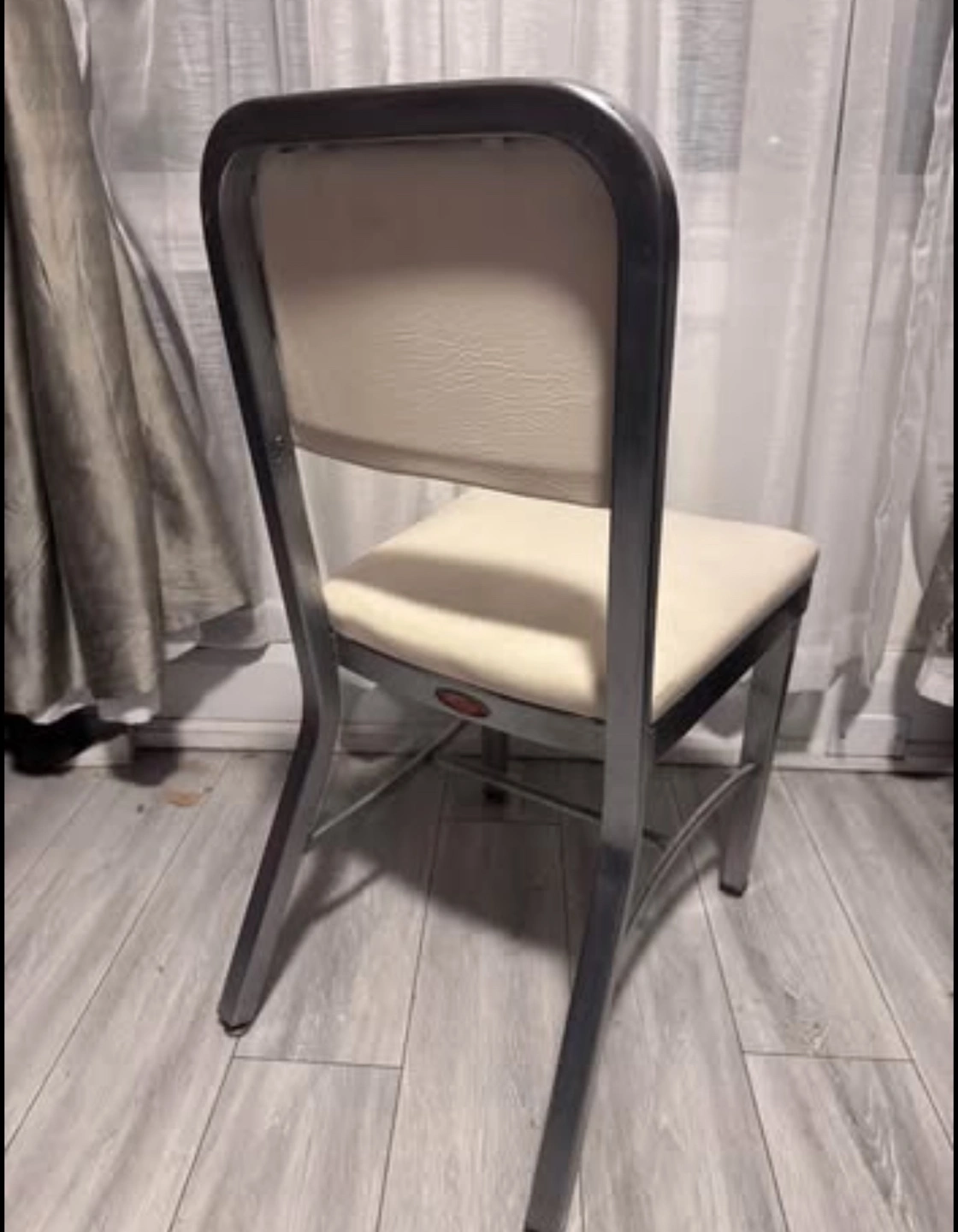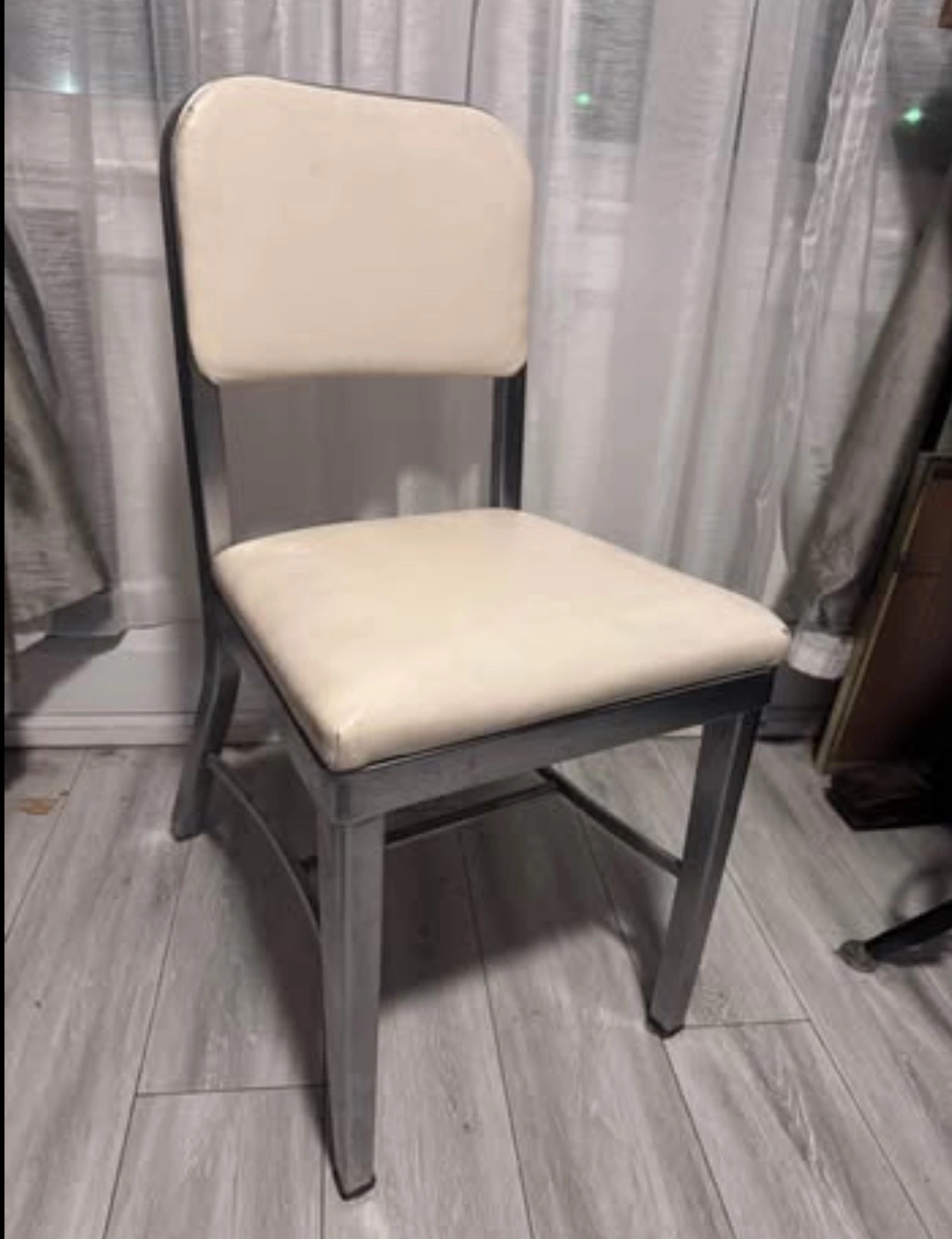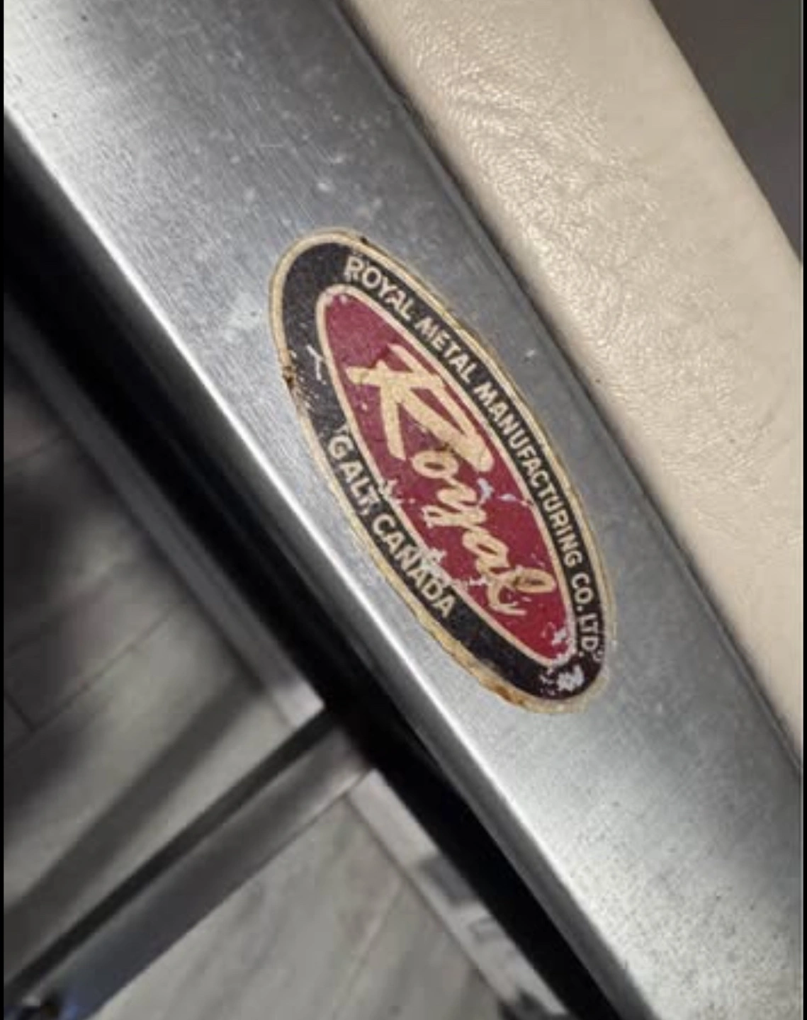 Vintage MSM White Tanker Chair. Made by Royal Metal Manufacturing Co. Ltd. in Galt, Canada. Cushions white naugahide. Excellent condition. $30. Pickup Toronto near Gerrard East/ Pape.