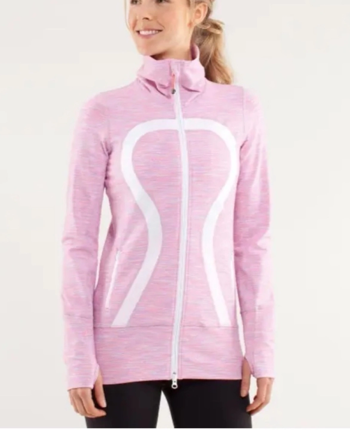 Women's Lululemon scuba hoodie. Size 6. Pink/white Long sleeves. Full zip. Excellent condition. 9.5/10 Please see other items. Tons of Lululemon…Bundle items to save. 🛍️ Pick up close to Yorkdale Mall or STC 📍