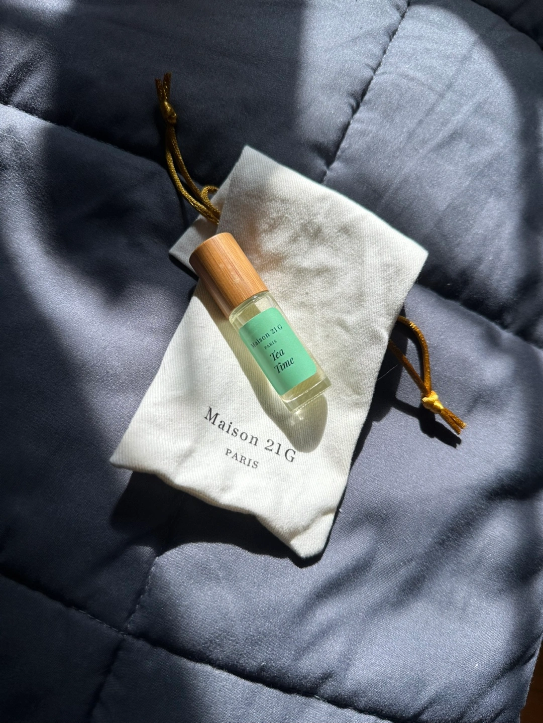 ✨Small rollerball perfume bottle. Tea Time scent. Comes in a little cloth bag. ❗️$20