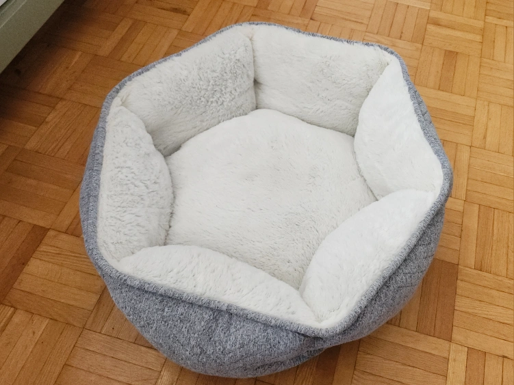 Soft plush hexagonal pet bed, for cats or small dogs. Around 18 inch diameter. Selling because our cat didn't like it. Pick up/cash only :)