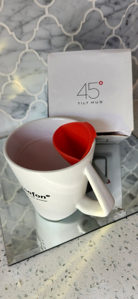 White ceramic mug. Red silicone insert. Box included. Branding includes Bernafon and Your hearing. Our passion.