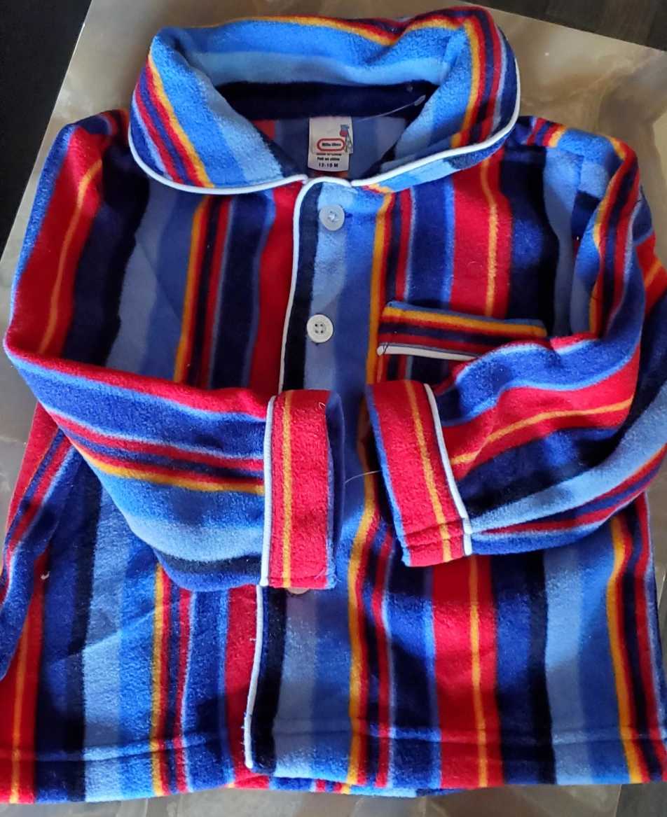 New. Bought to gift. Fleece pajamas. Long sleeves and pants. Button closure.