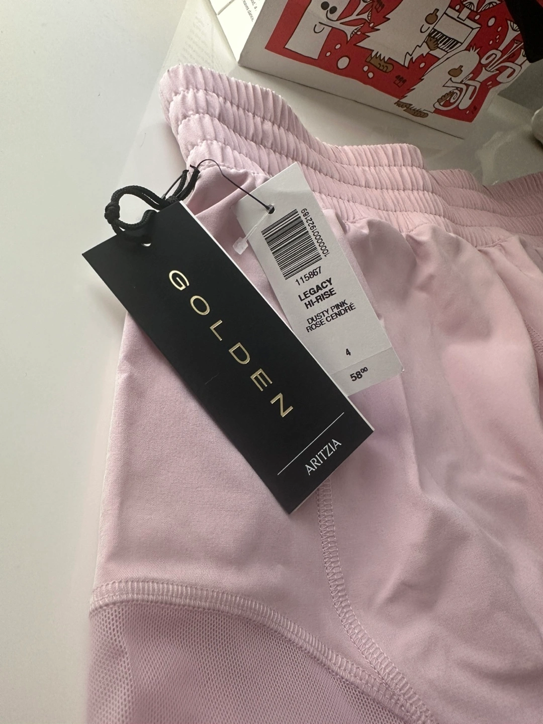 New with tags, dusty pink, size 4. High-rise, mesh detailing. Gifted from Aritzia but sadly not my size. Comes with original bag too. Message if interested!