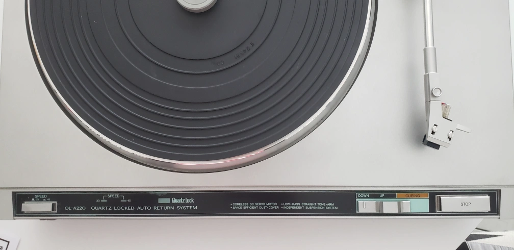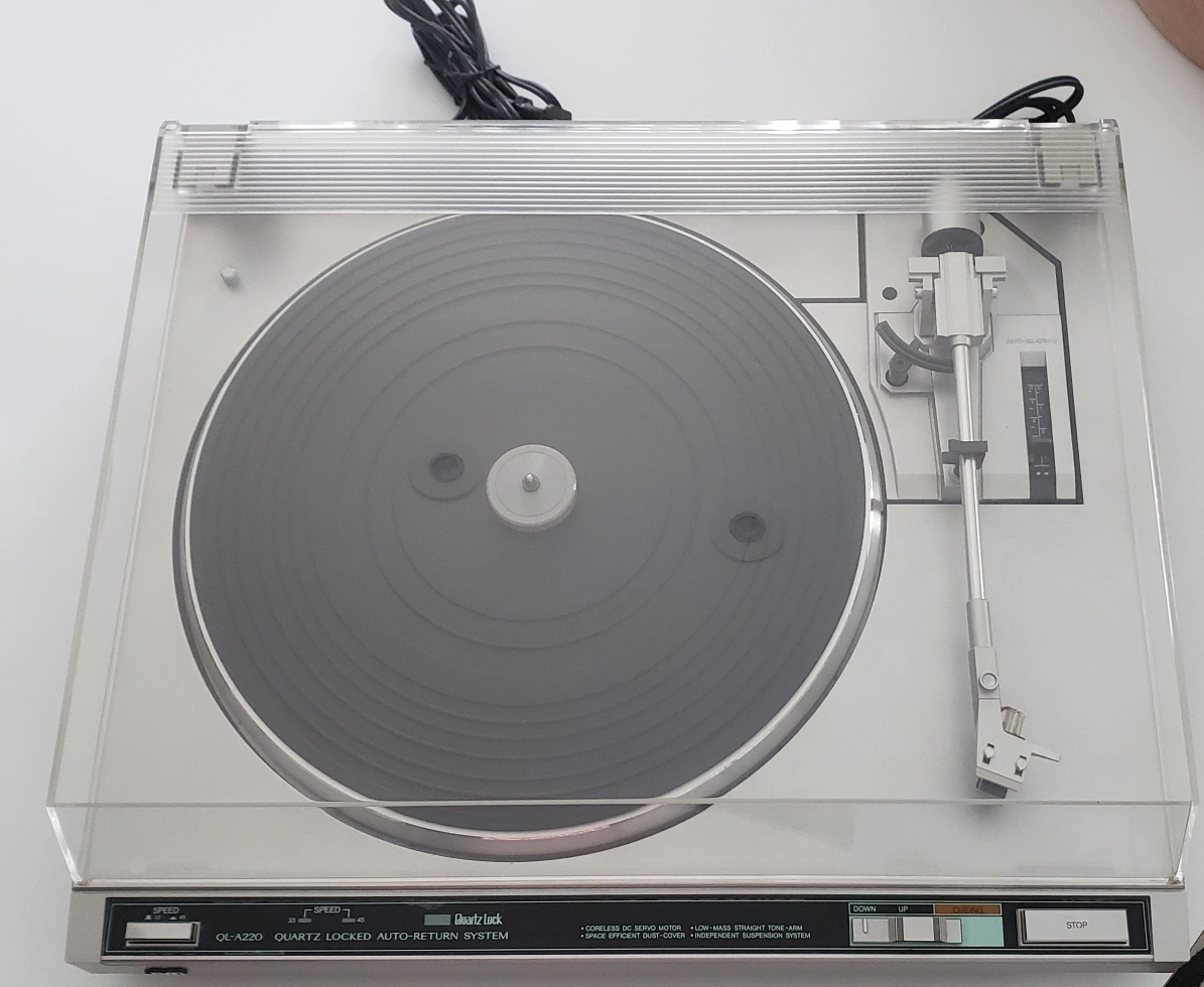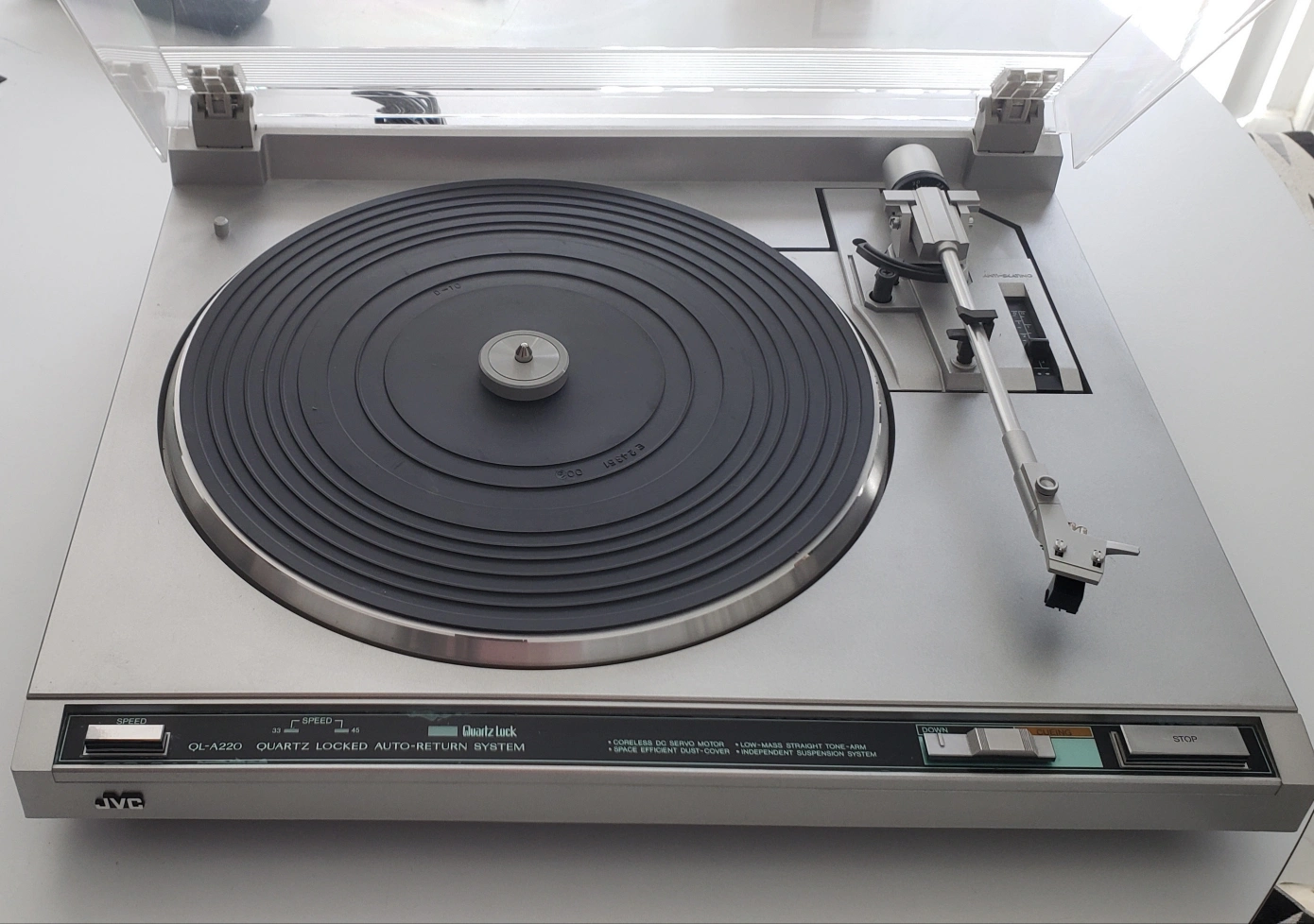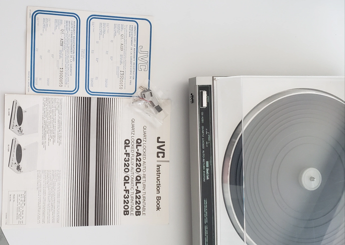 JVC- Model QL-A220, manufactured by Victor Company of Japan between 1983-1985. Made in Japan. Has cueing option, excellent quality, perfect working condition, super quiet operation and good sound. Includes manual and spare new JVC Headshell.