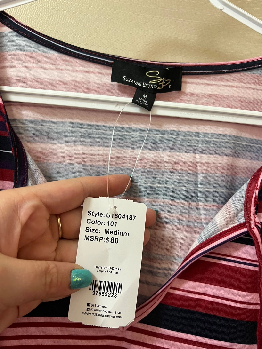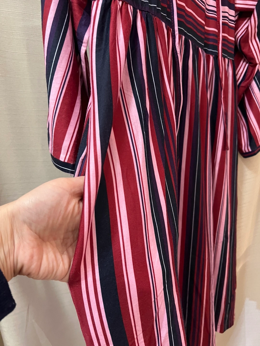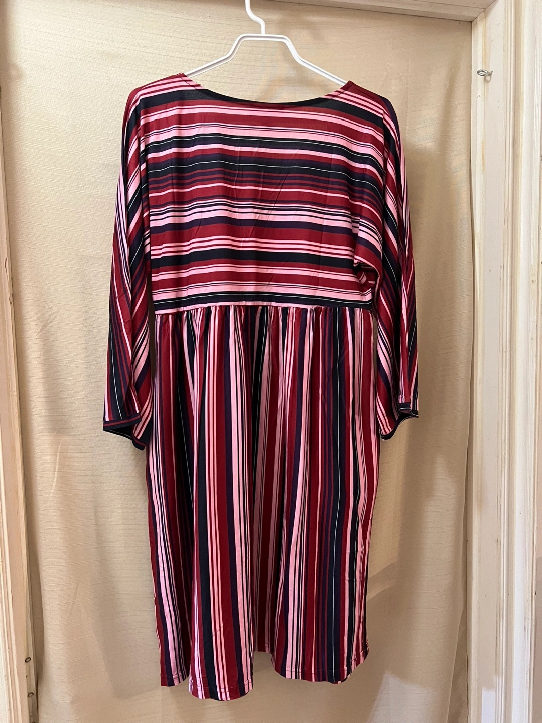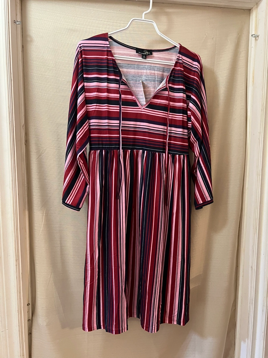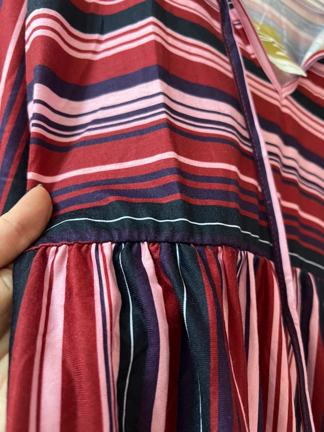 Beautiful empire waist dress. Features a V-neckline and three-quarter sleeves. Multicoloured stripes. Size Medium. Brand new with tags. Ptp- 19 Length- 36 Arm- 19 Waist- 16