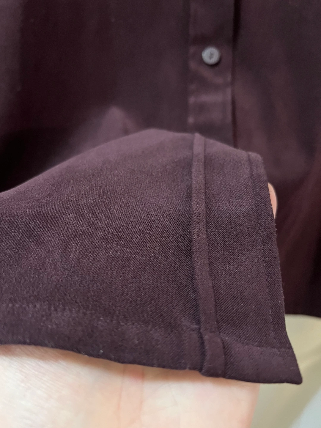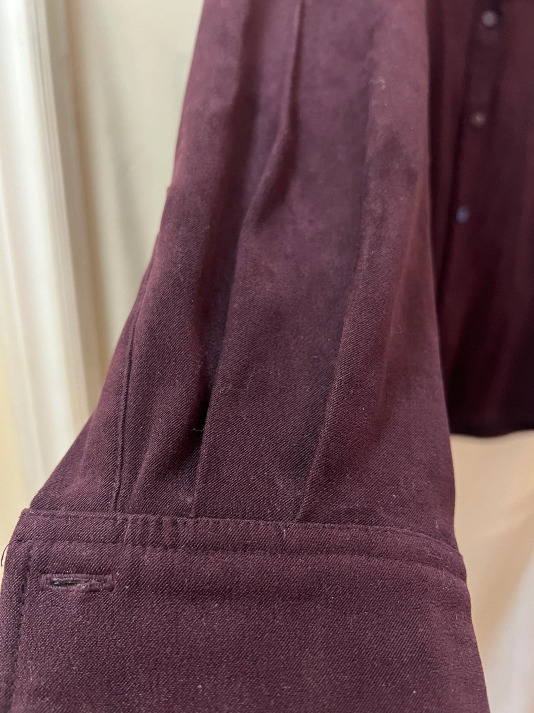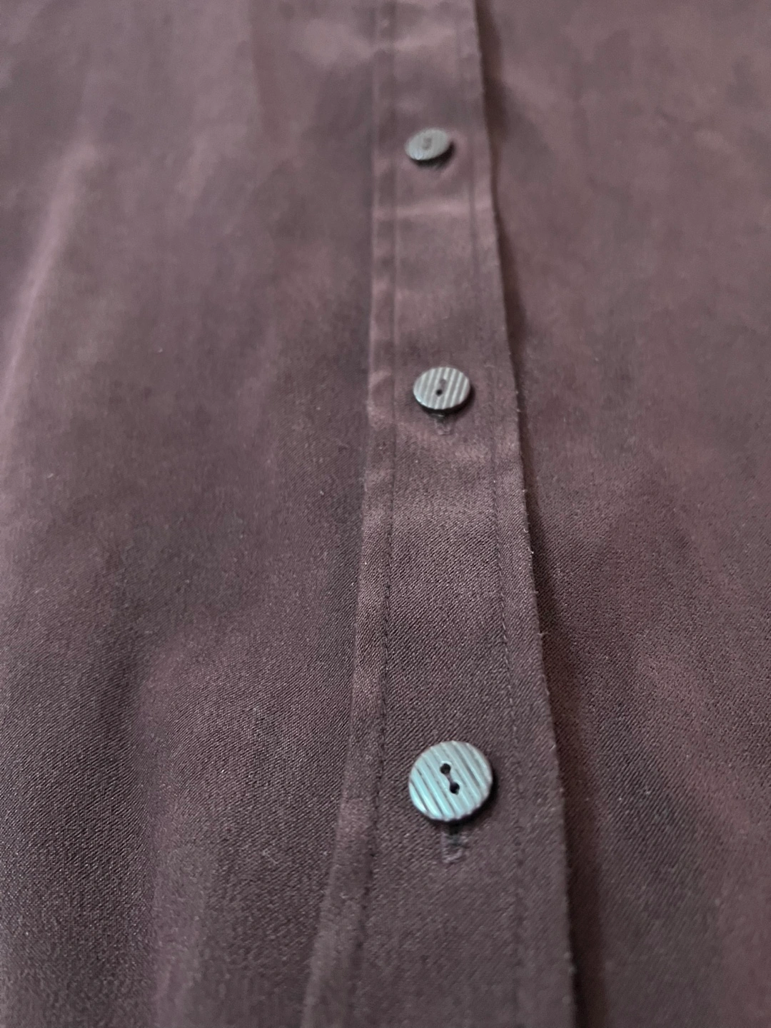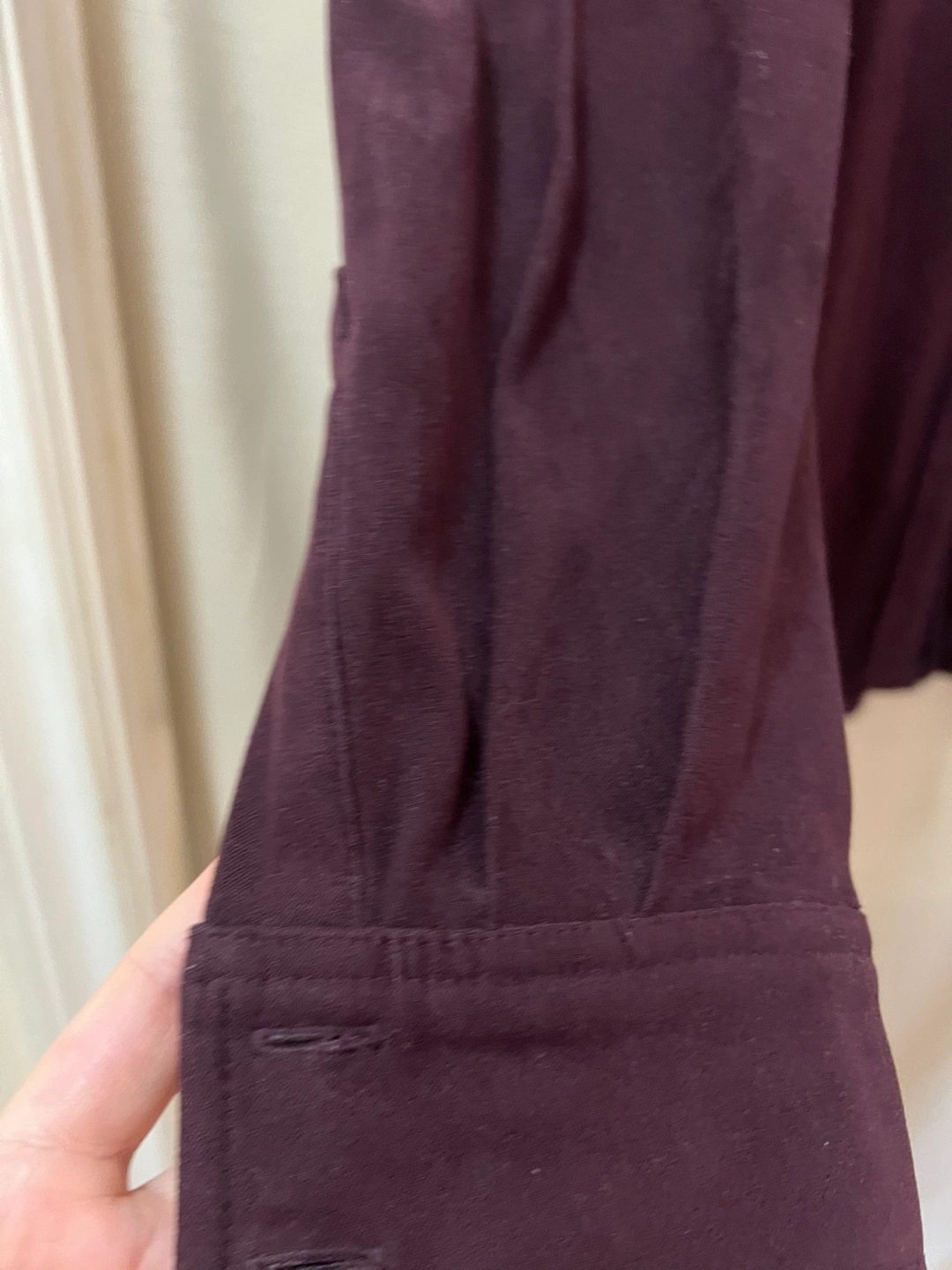 Long-sleeved Allison Taylor dark purple button-down shirt. Size large. 97% polyester, 3% spandex. Ptp- 21 Length- 28 Arm- 24