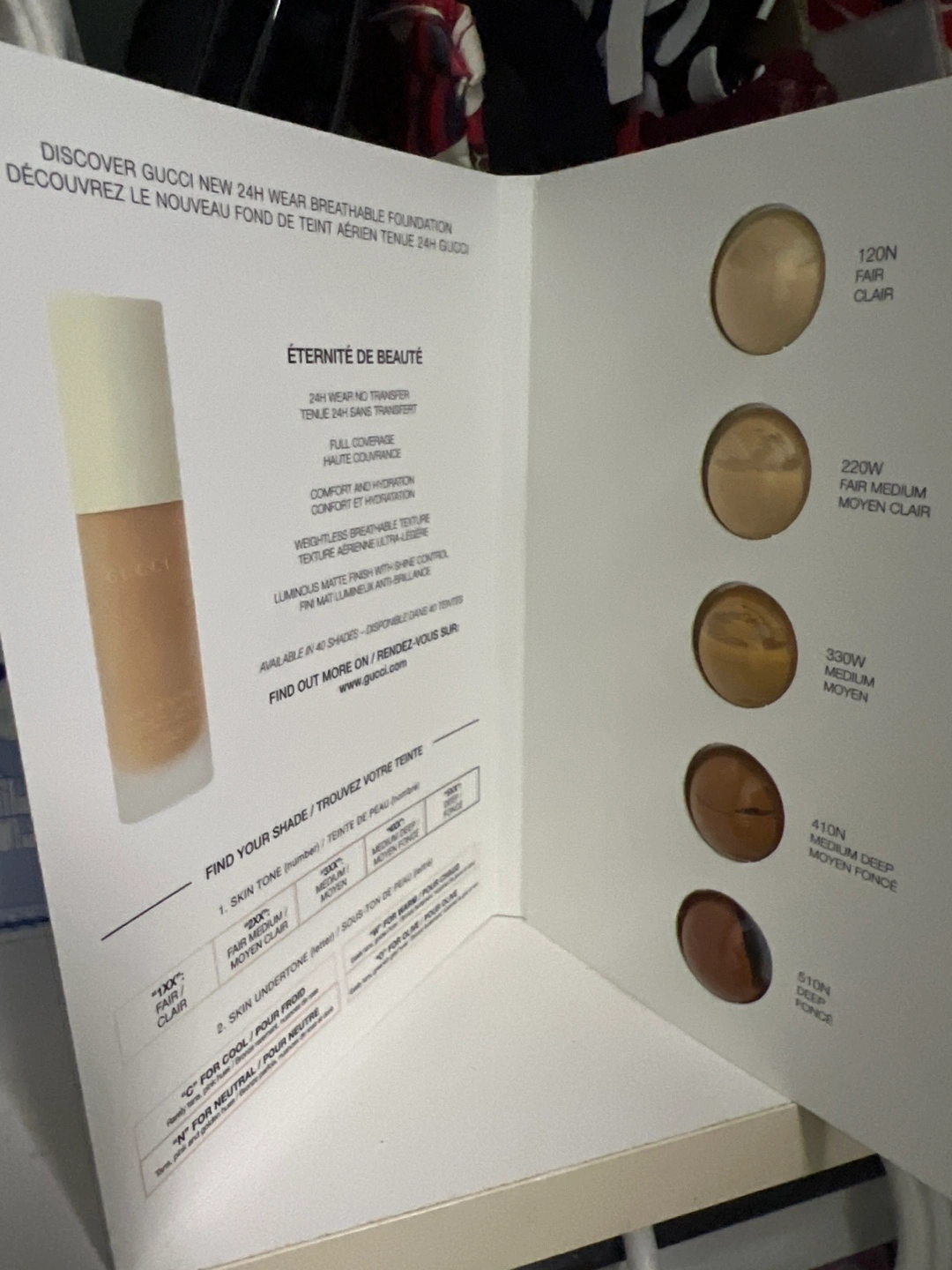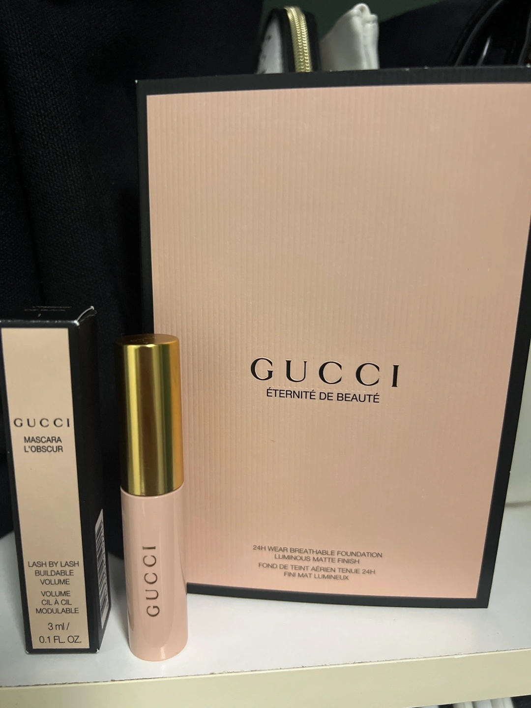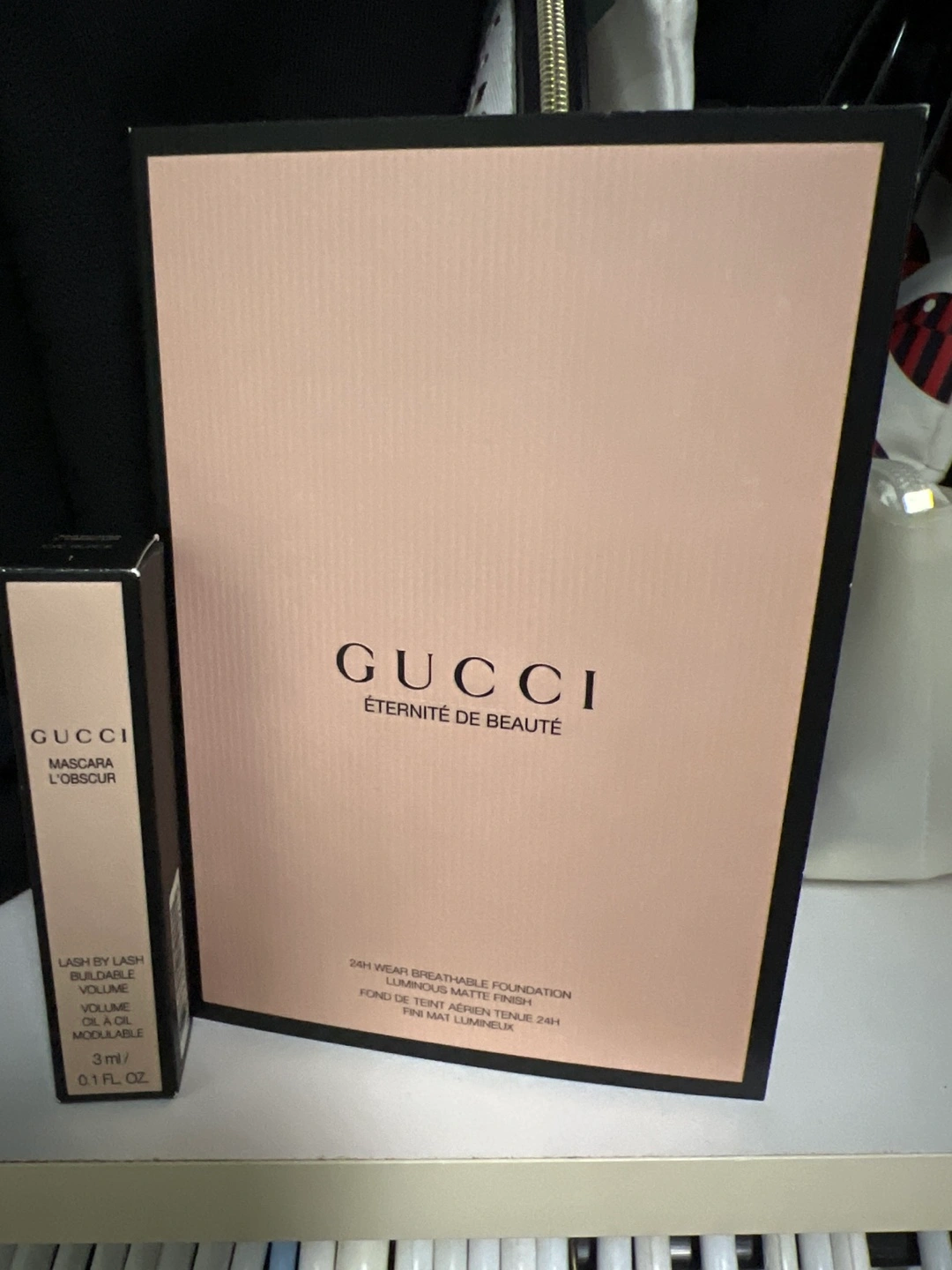 Miniature Gucci mascara and foundation samples with a colour chart. Brand New, never used.