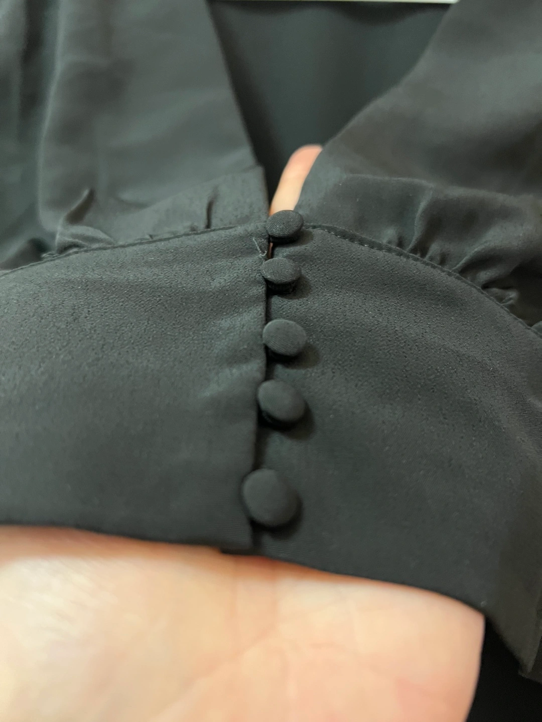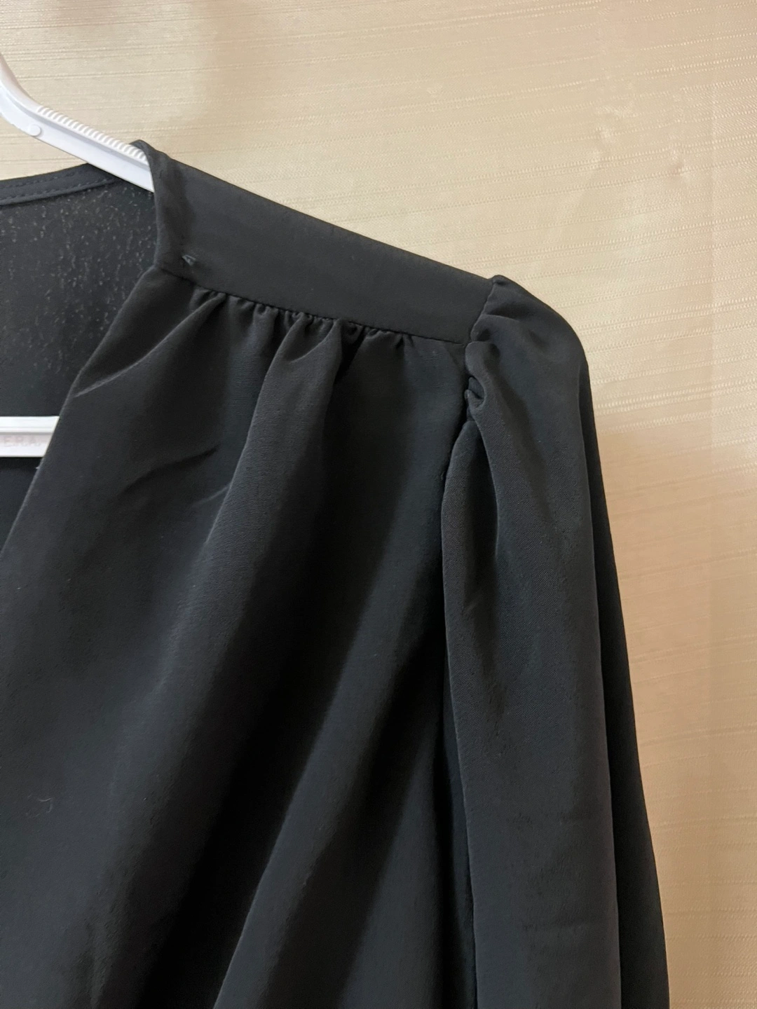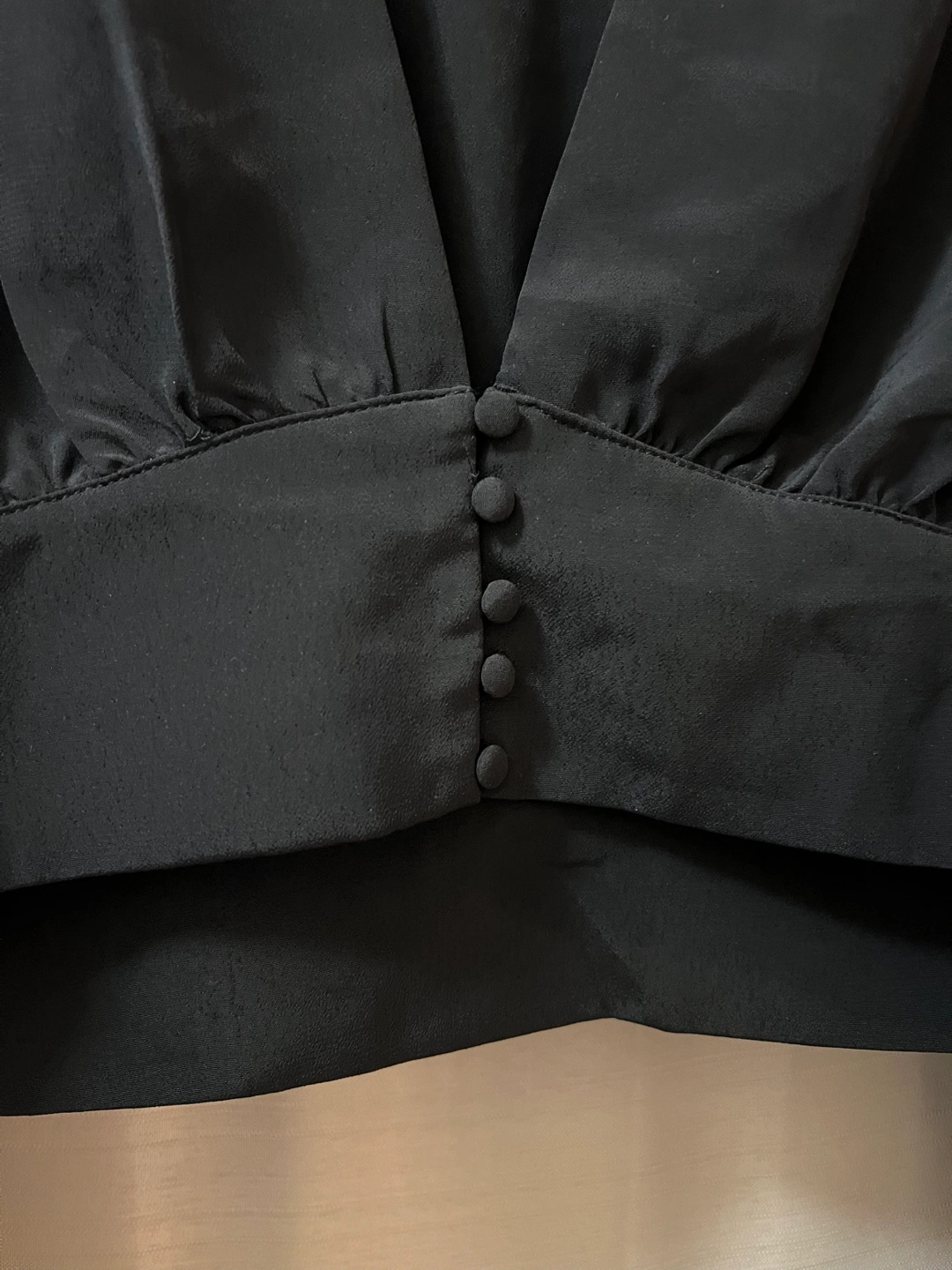 Black cropped long sleeve blouse. Features puff sleeves, button front, and V-neck. Size small. Ptp- 18 Length- 17 Arm- 28 (approx) Waist- 12.5