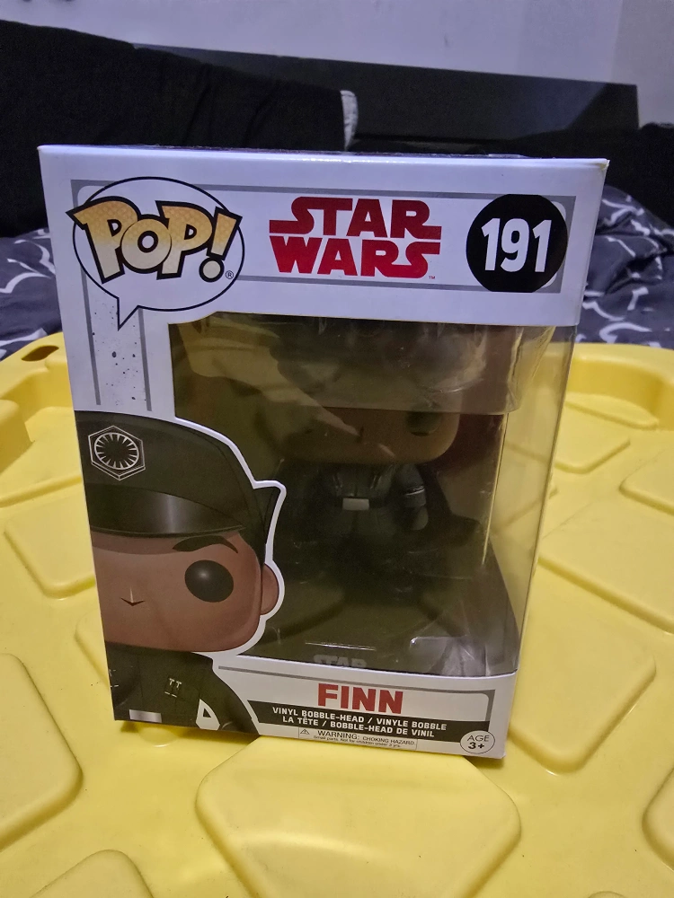 Funko Pop! Star Wars vinyl bobble-head. Figure of Finn in a black uniform. Collectible item, number 191.