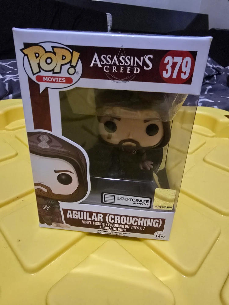 Pop! Vinyl figure. Assassin's Creed Aguilar. Crouching pose. Loot Crate exclusive. Number 379.