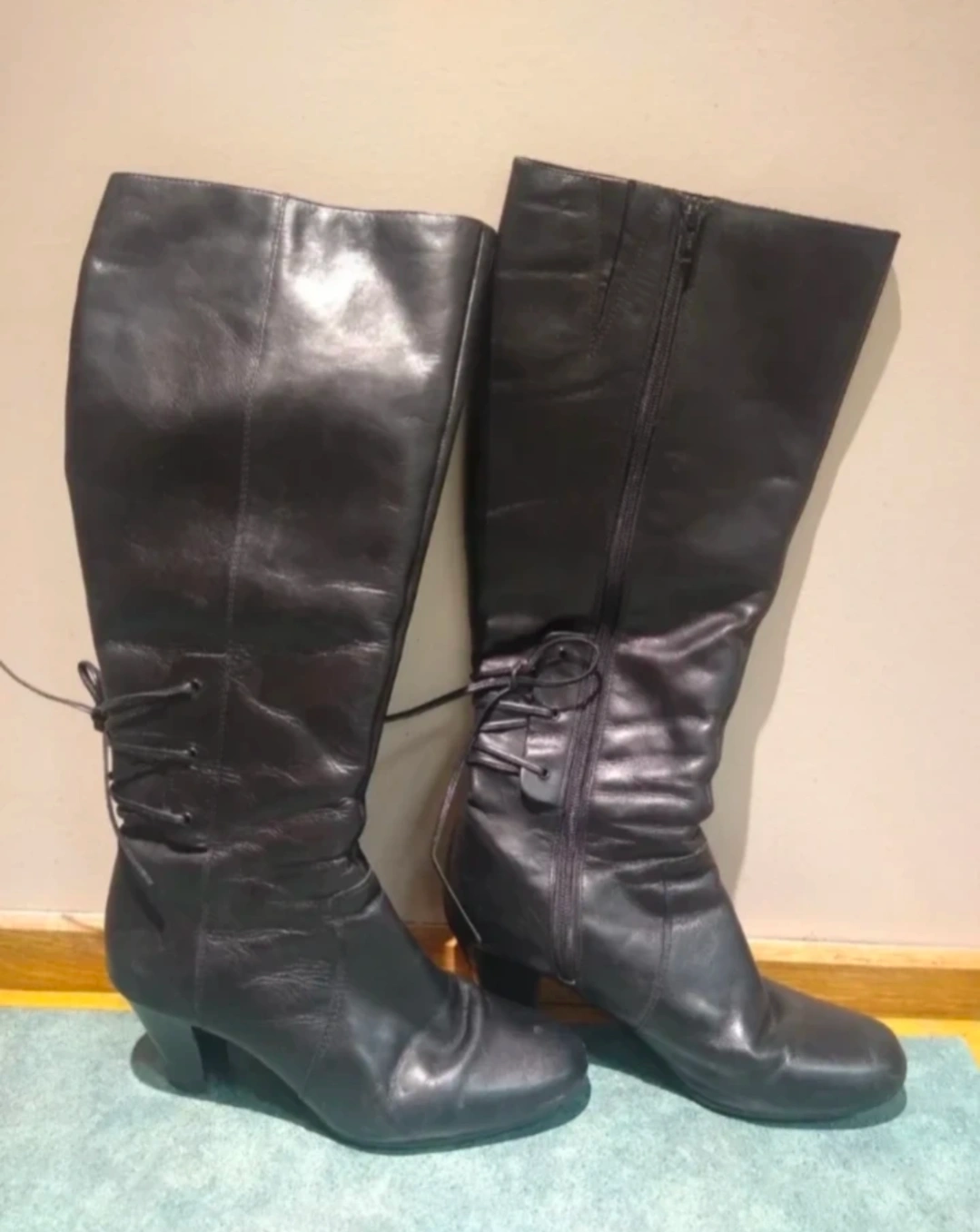 Ladies zip-up black genuine leather high heeled boots made by Clark's. Size 7.5. In excellent condition.