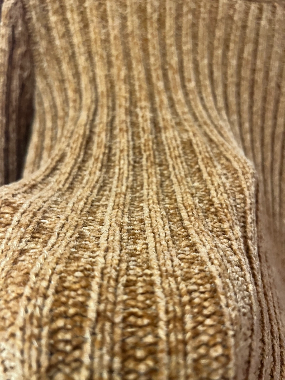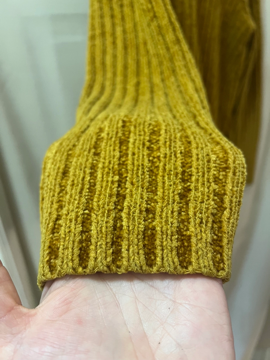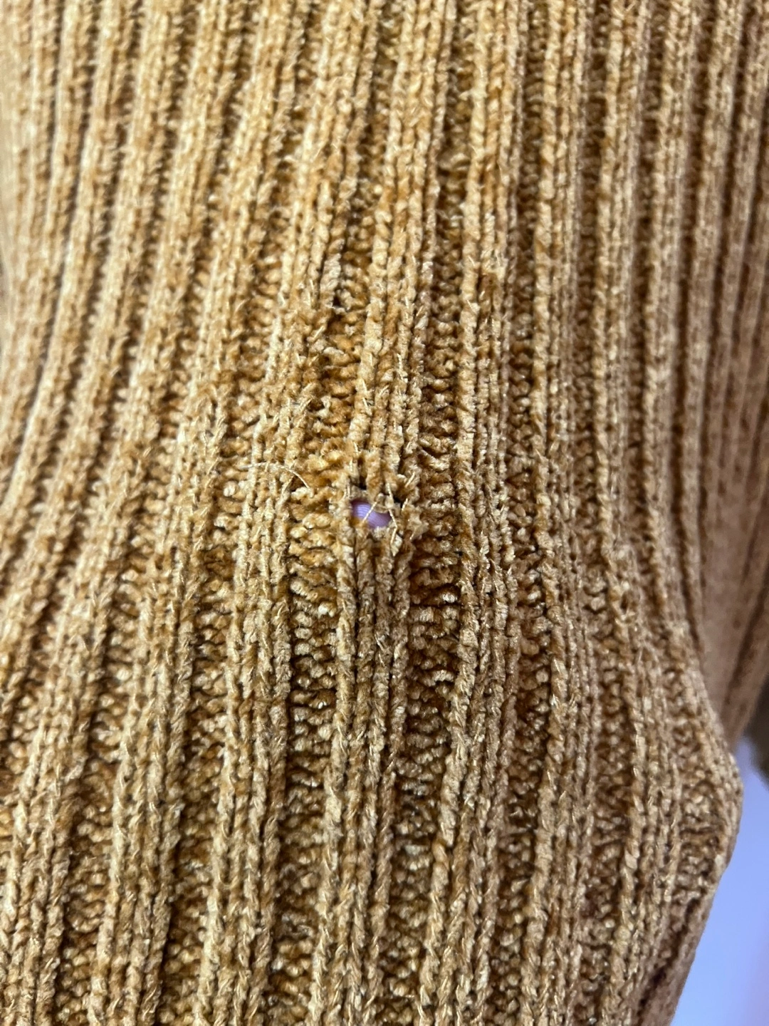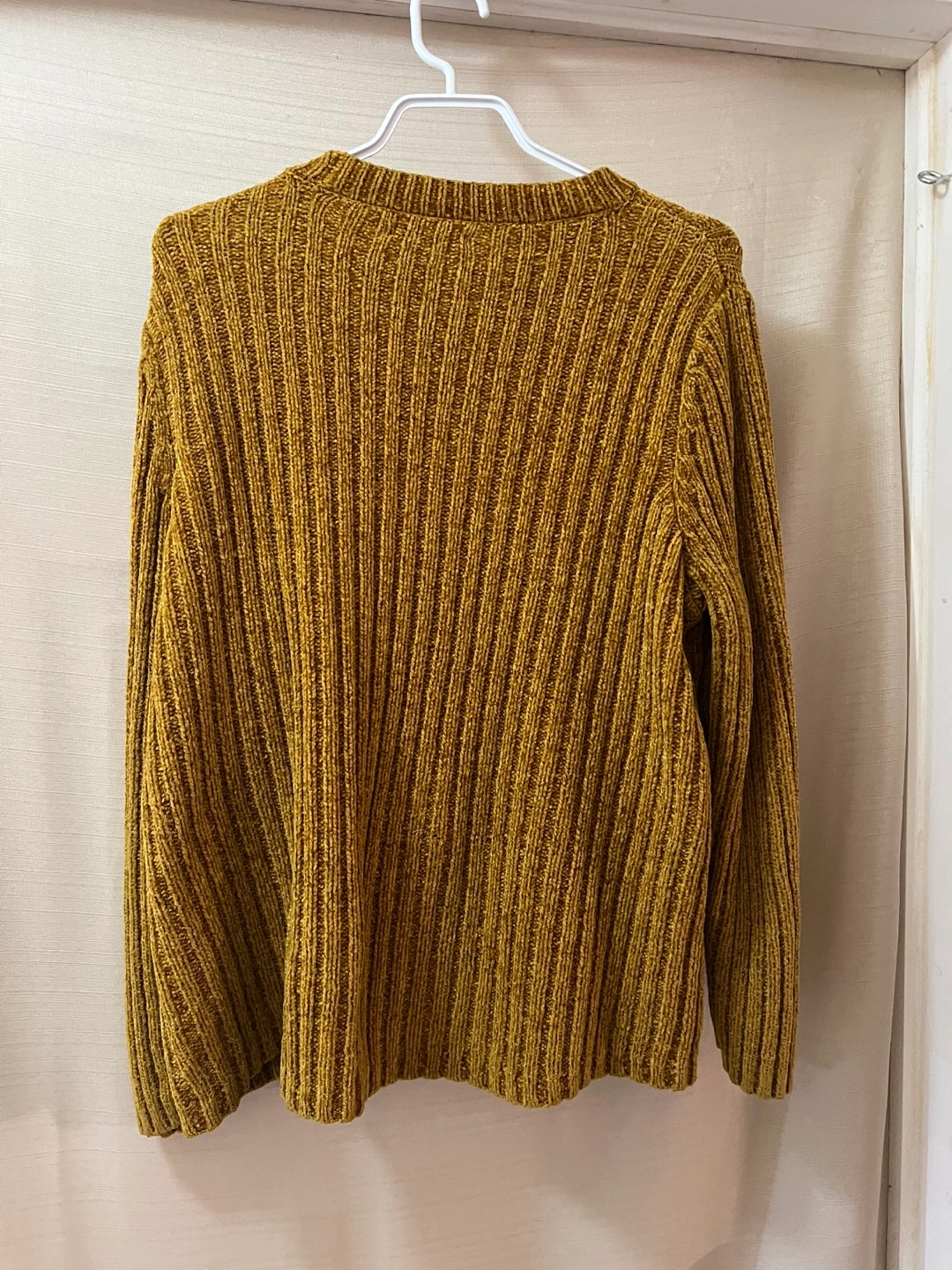 Mustard yellow ribbed knit sweater. Size small. Long sleeves. One spot to notice, as shown in pictures. Ptp- 23 Length- 25 Arm- 24