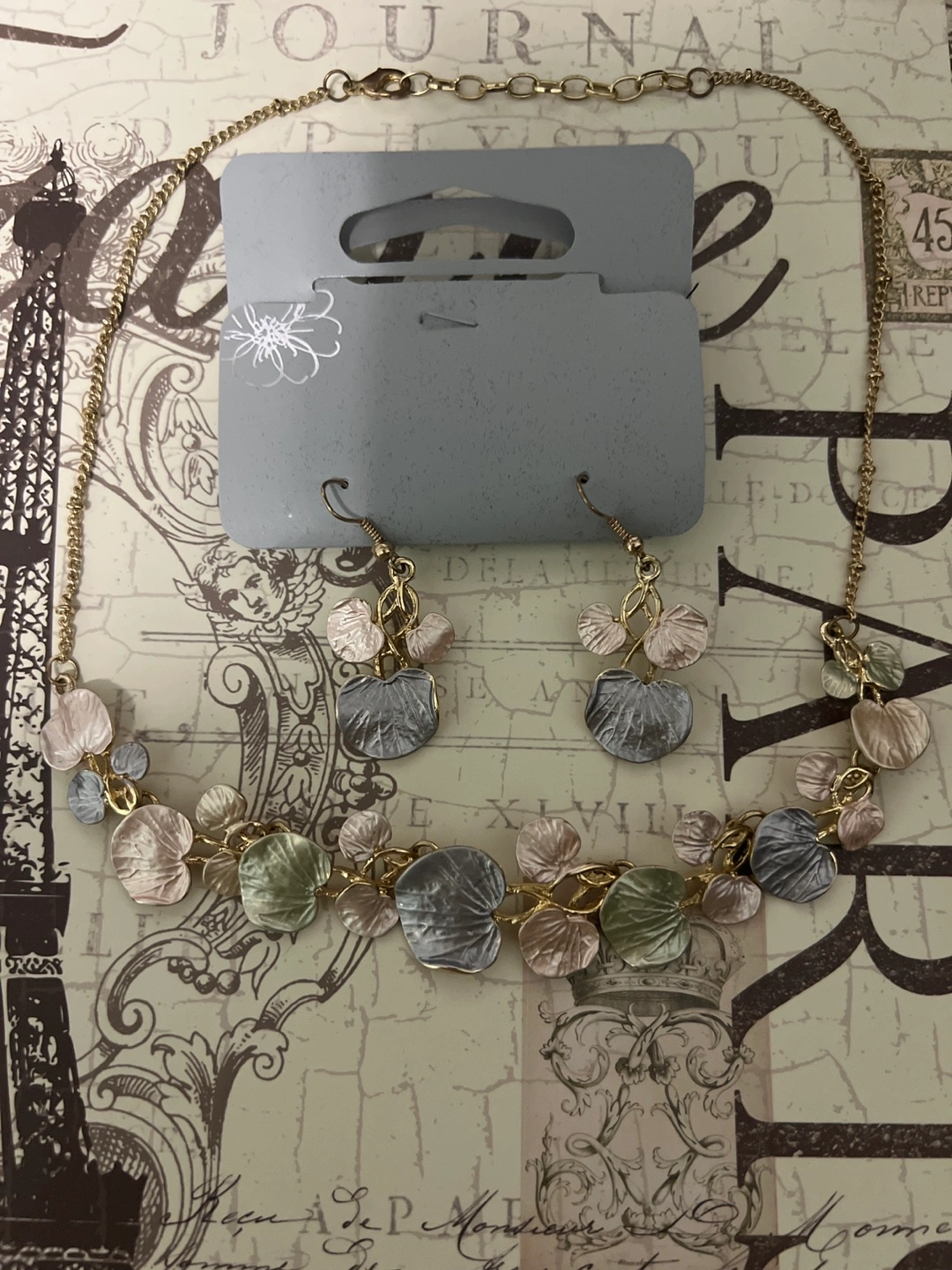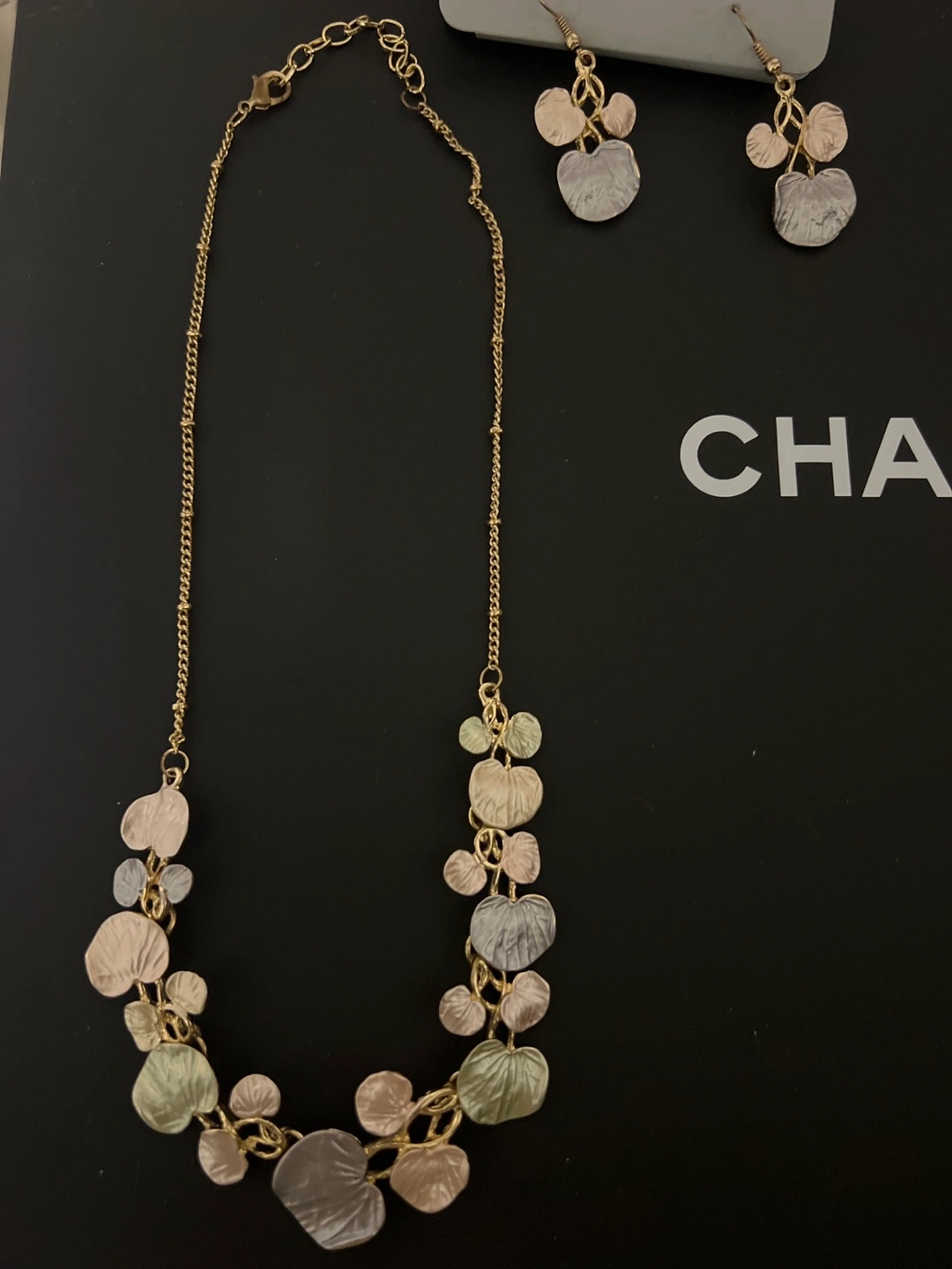 Gorgeous necklace and earring set. Features a gold tone chain and multicoloured floral pendant. Matching floral earrings included. New with tags. Slight oxidation on necklace clasp as it is real silver. Comes in a Kate Spade jewelry pouch.