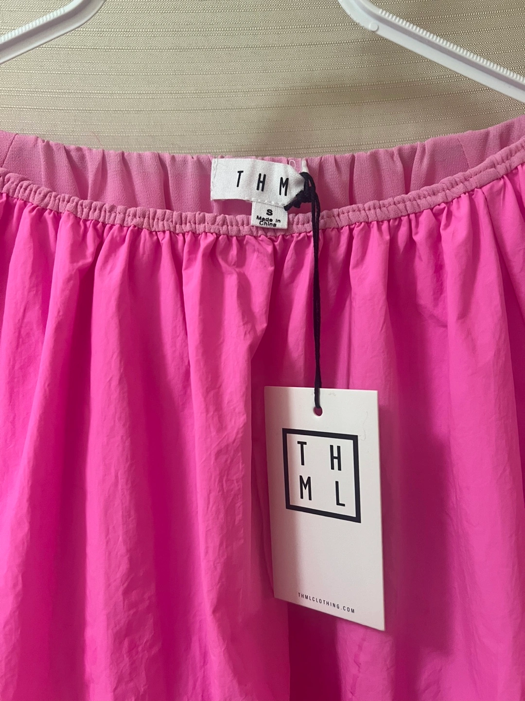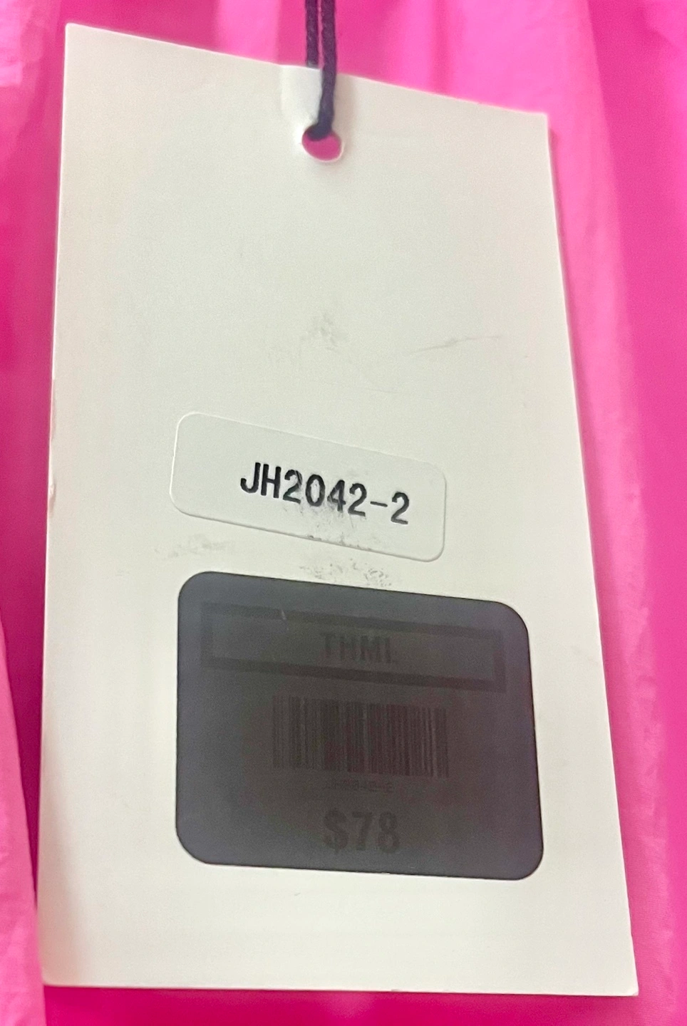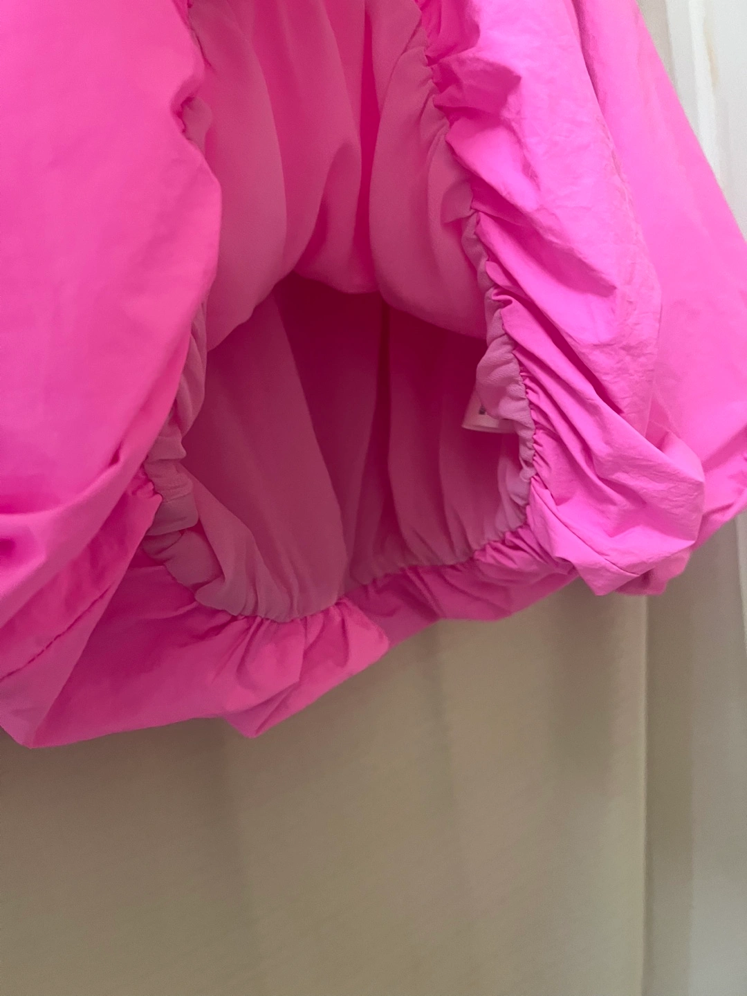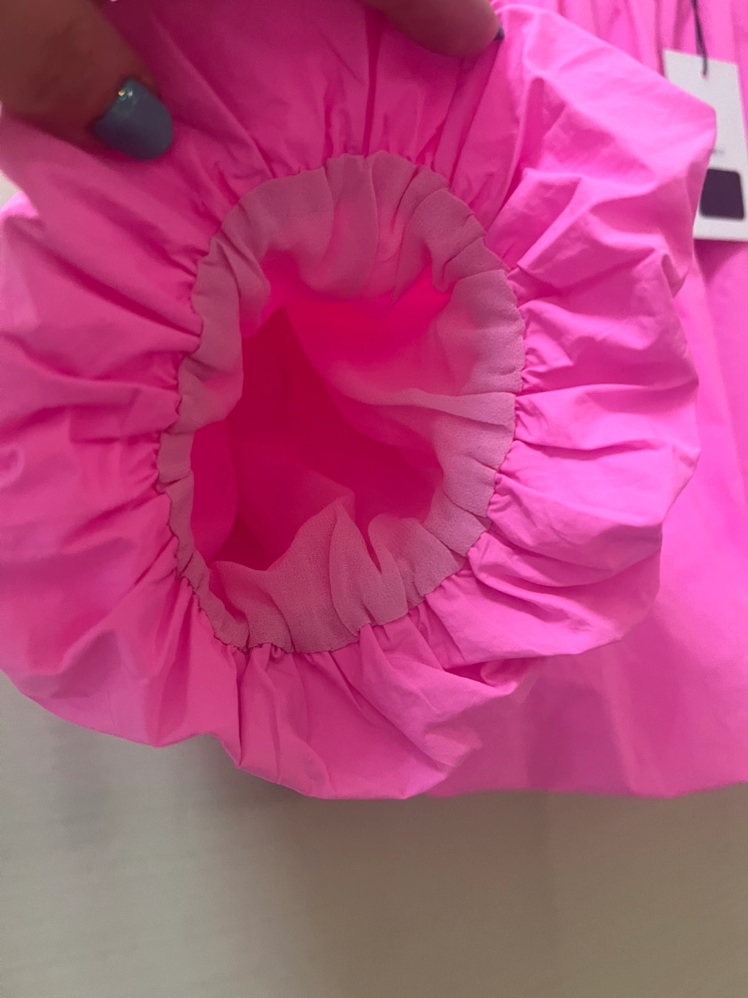 Hot pink cropped blouse. Puff sleeves. Off-the-shoulder neckline. Size small. 100% nylon. Ptp- 22 (approx) Length- 16.5 (approx) Arm- 14 (approx)