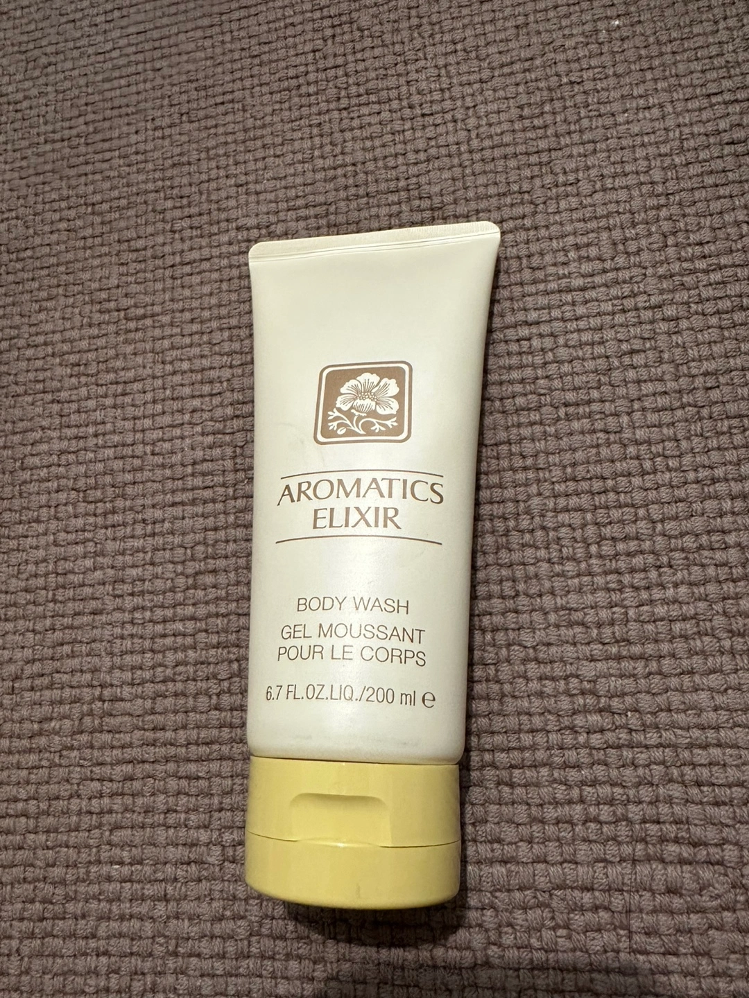 Unused Aromatics Elixir body wash. Gel moussant pour le corps. 200 ml tube. Yellow cap.