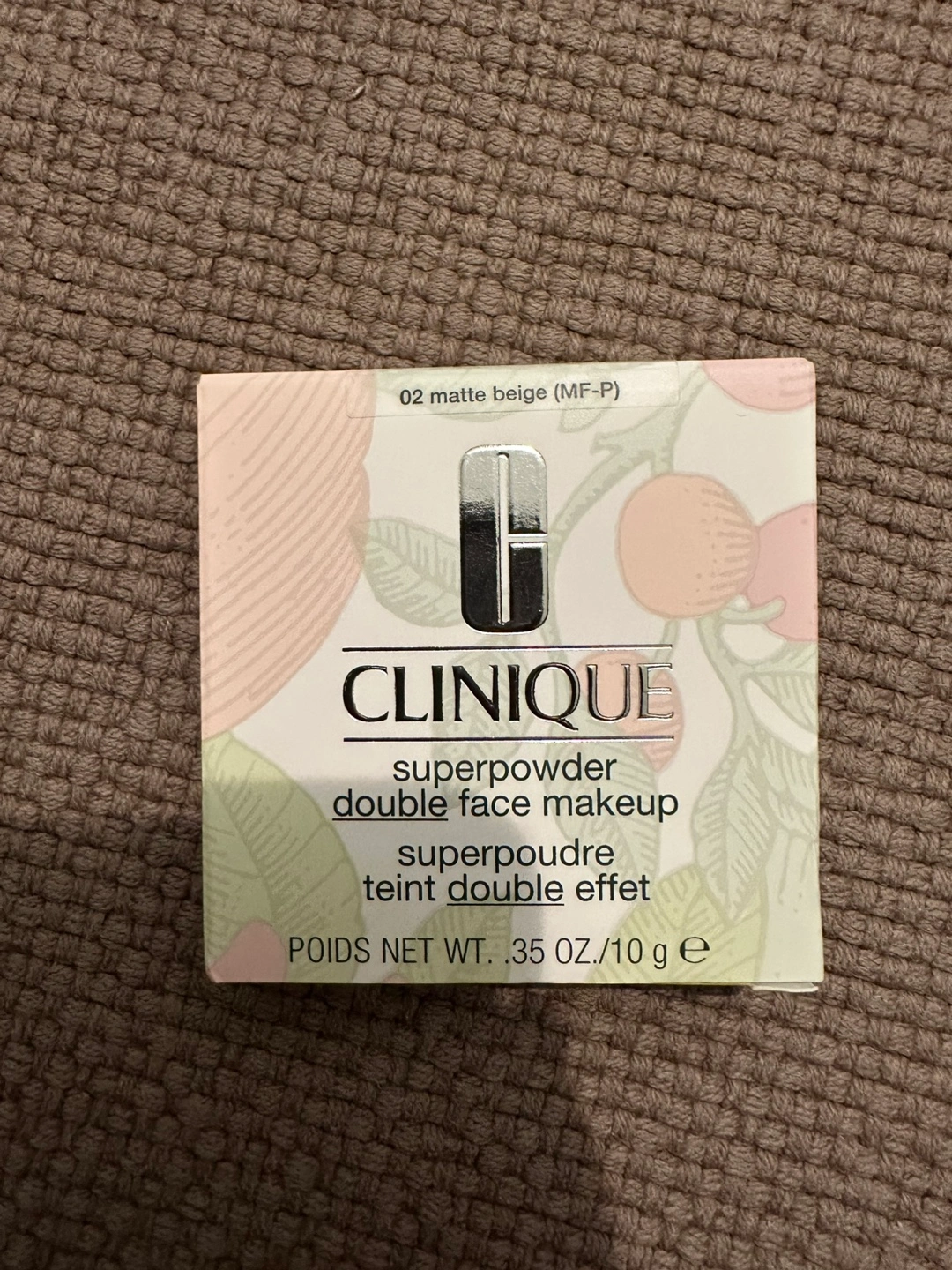 Clinique Superpowder Double Face Makeup in shade 02 Matte Beige. 10g/ .35 oz. Allergy tested and 100% fragrance free. Compact powder.