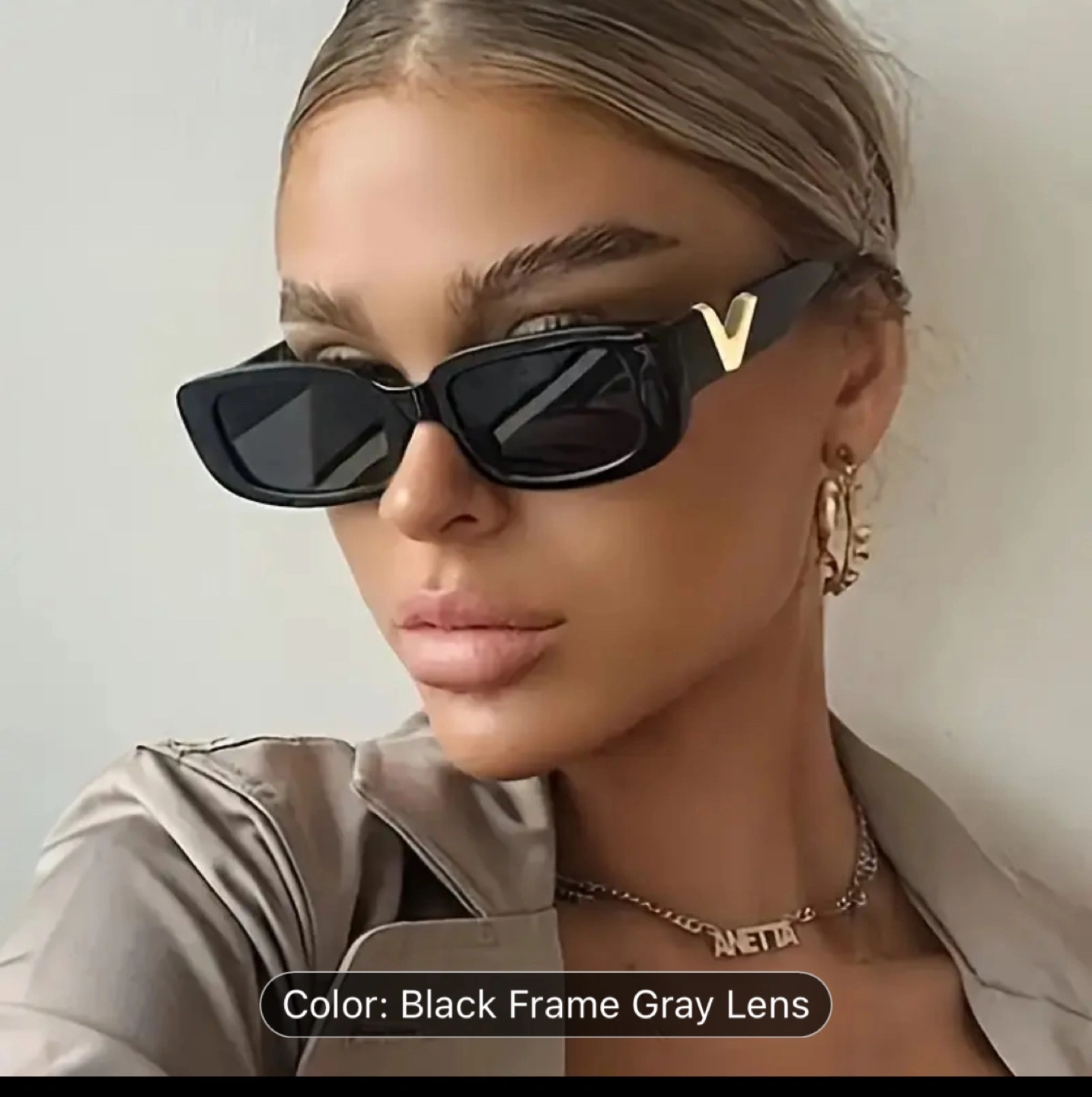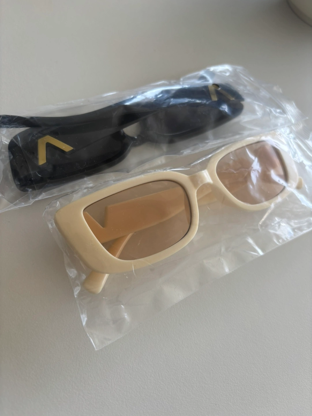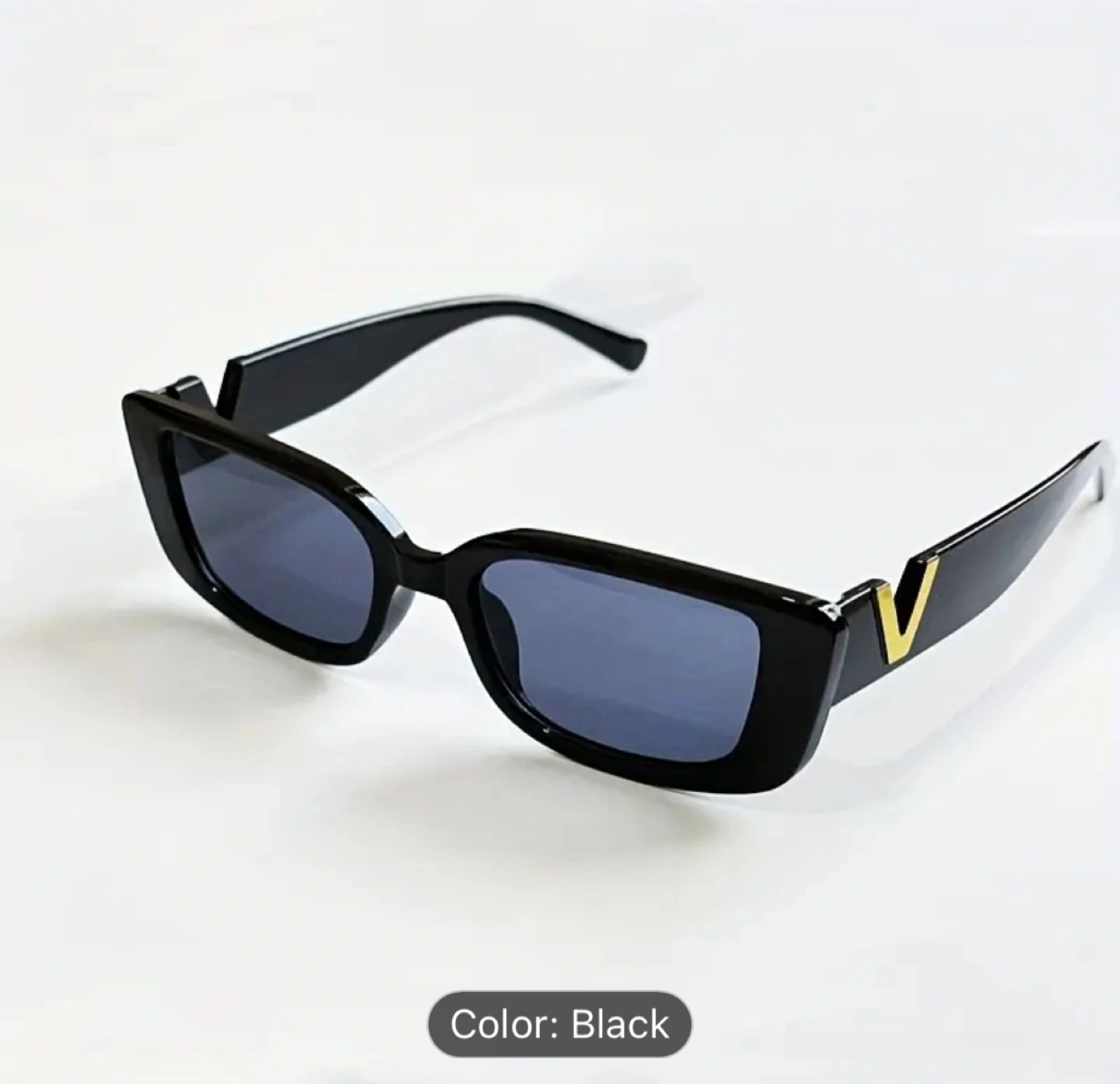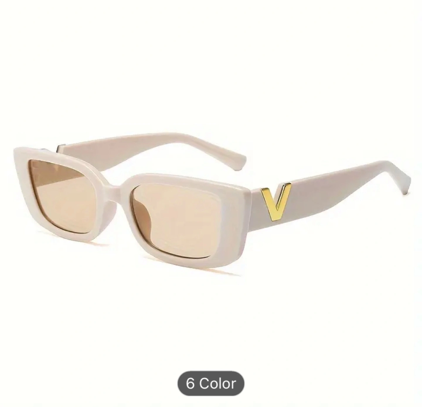 2pc - 12$ Pair of rectangular sunglasses. Features a gold V accent on the side. Available in black and beige frames. Great for summer.